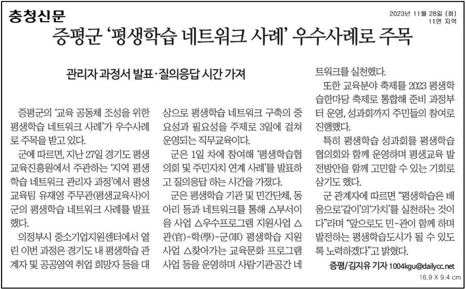 증평군, 경기도를 찾아 평생학습 우수사례 전파