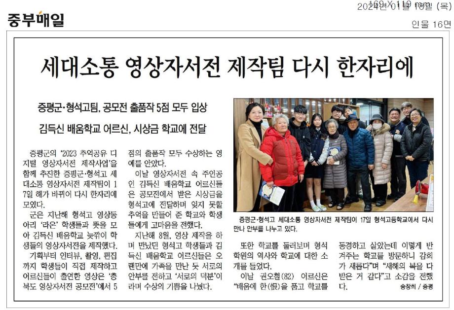 덕분입니다, 증평군-형석고 영상자서전 제작팀 다시 한자리에