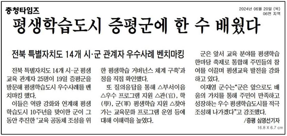 평생학습으로 정평나는 증평