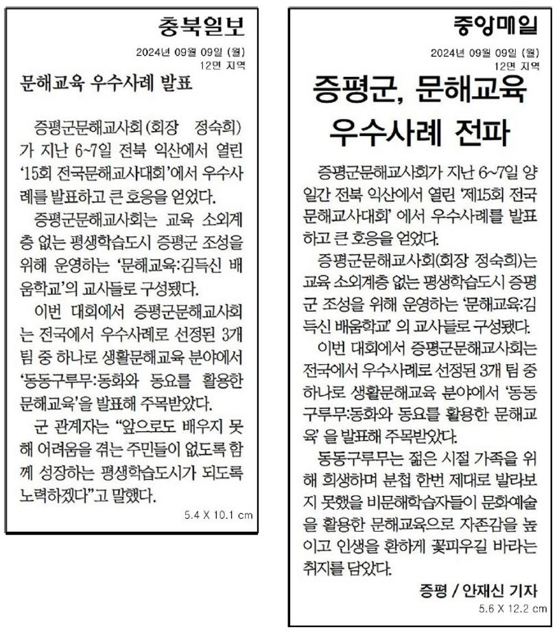 증평군, 문해교사 우수사례 전파