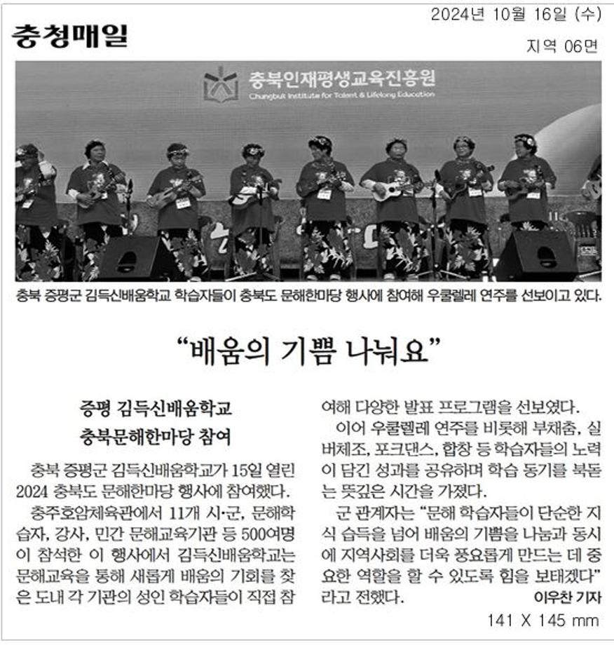 증평군 직장인을 위한 퇴근길 아카데미 마련