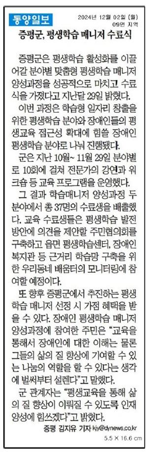 증평군 평생학습매니저 양성과정 개강
