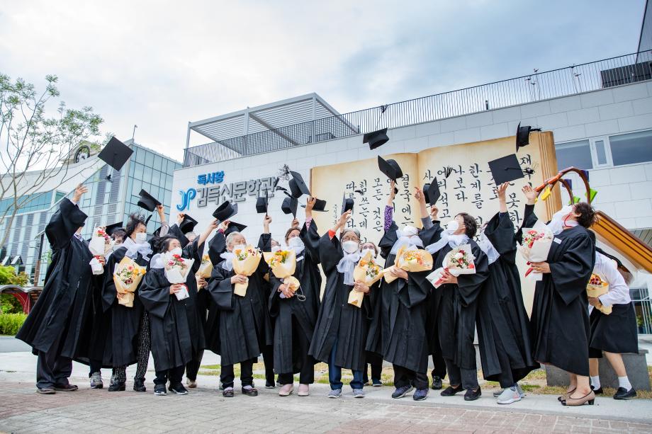 늦깎이 졸업생 23명은 졸업가운과 학사모를 착용하고 한자리에 모여