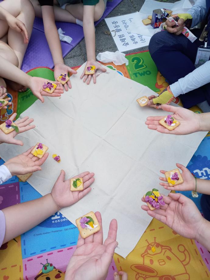 이쁜 꽃과 잎으로 보기에도 좋고 맛도 좋은 카나페도 만들어서 먹어봤지요.