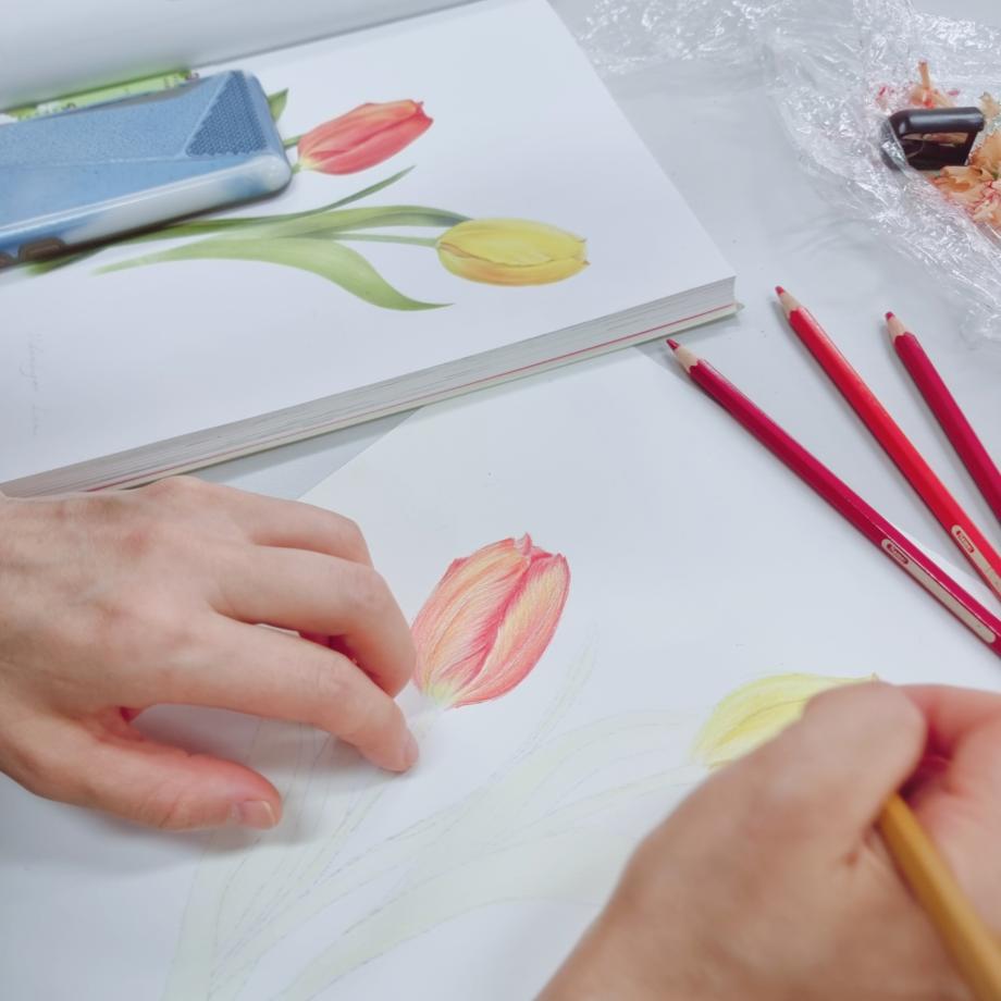 색연필을 사용하여 명암을 표현하는 시간을 거듭하며
