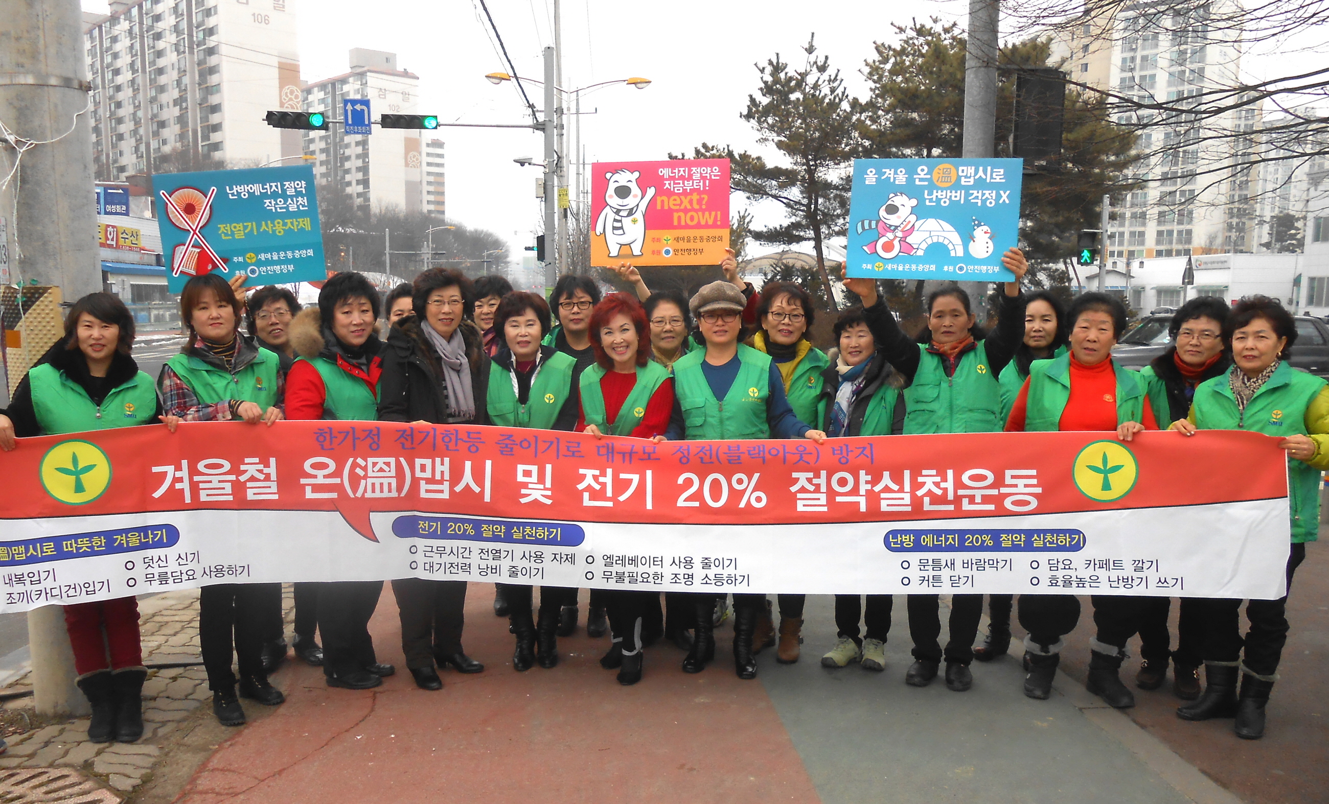 증평군새마을회(회장 강성오)는 22일 군청 사거리인근 지역에서 동절기 전력 부족에 따른 피해 예방을 위한 범 국민 캠페인을 실시했다. [보도자료실 참조]