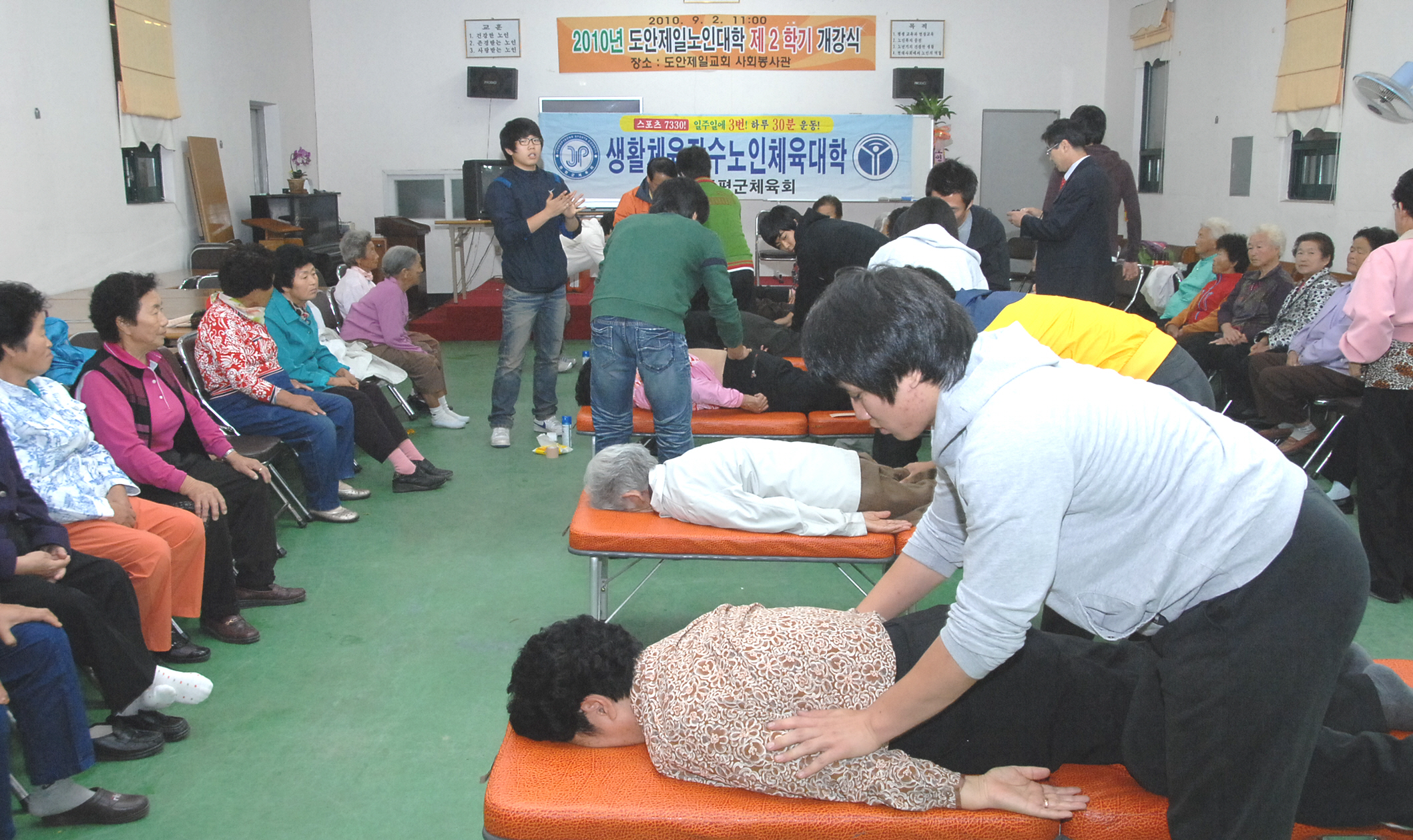 증평군 체육회는 14일 오전 10시부터 2시간동안 도안제일교회에서 어르신들을 대상으로 스포츠마사지를 실시해 호응을 얻었다.[보도자료실 참조]