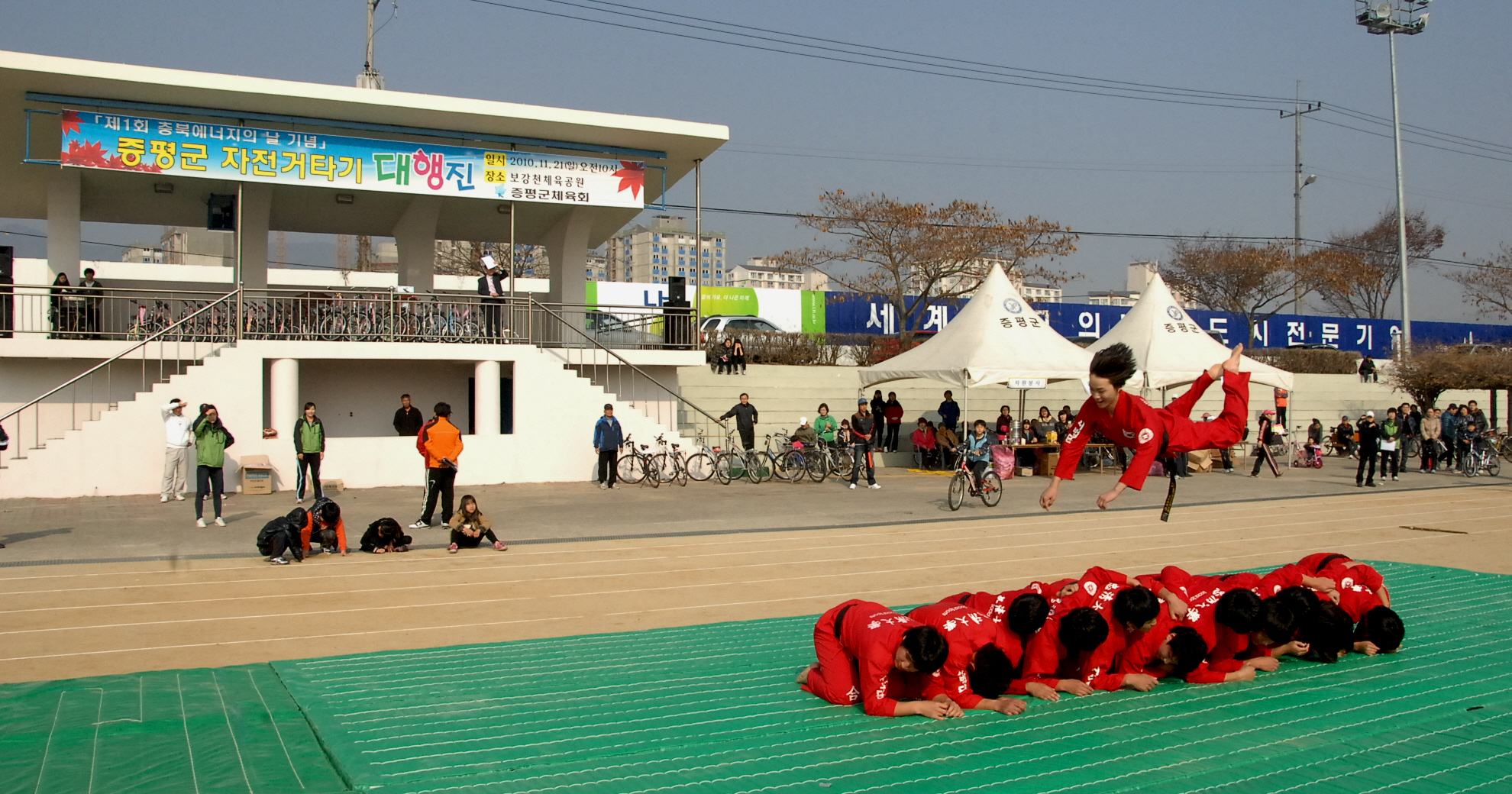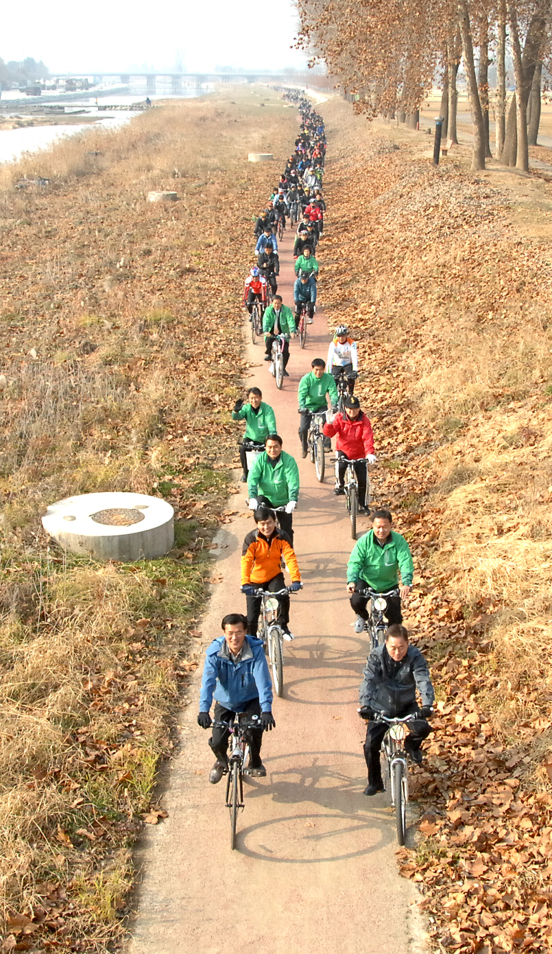 전국 10대 자전거 거점도시로 선정된 증평군 보강천체육공원에서는 21일 오전 10시 300여명의 군민들이 참여한 가운데 ‘증평군 자전거타기 대행진’ 행사가 열렸다. [보도자료실 참조]