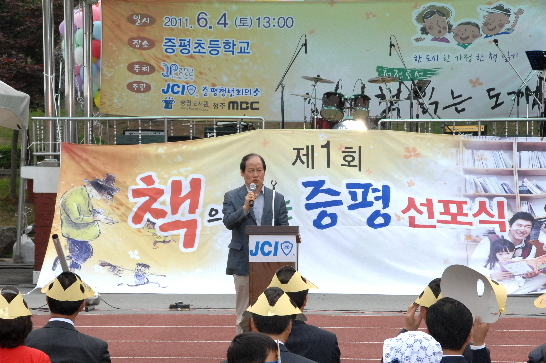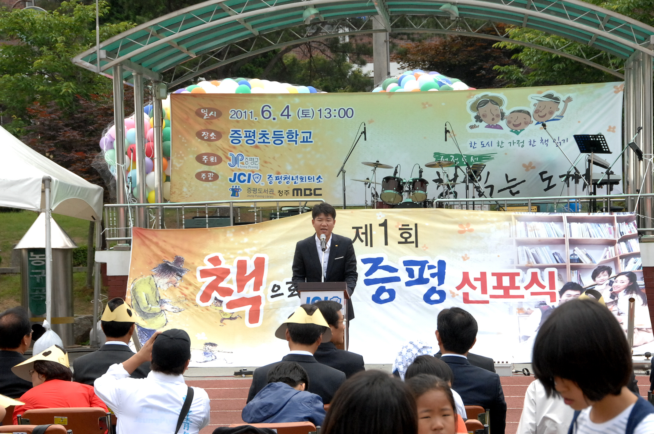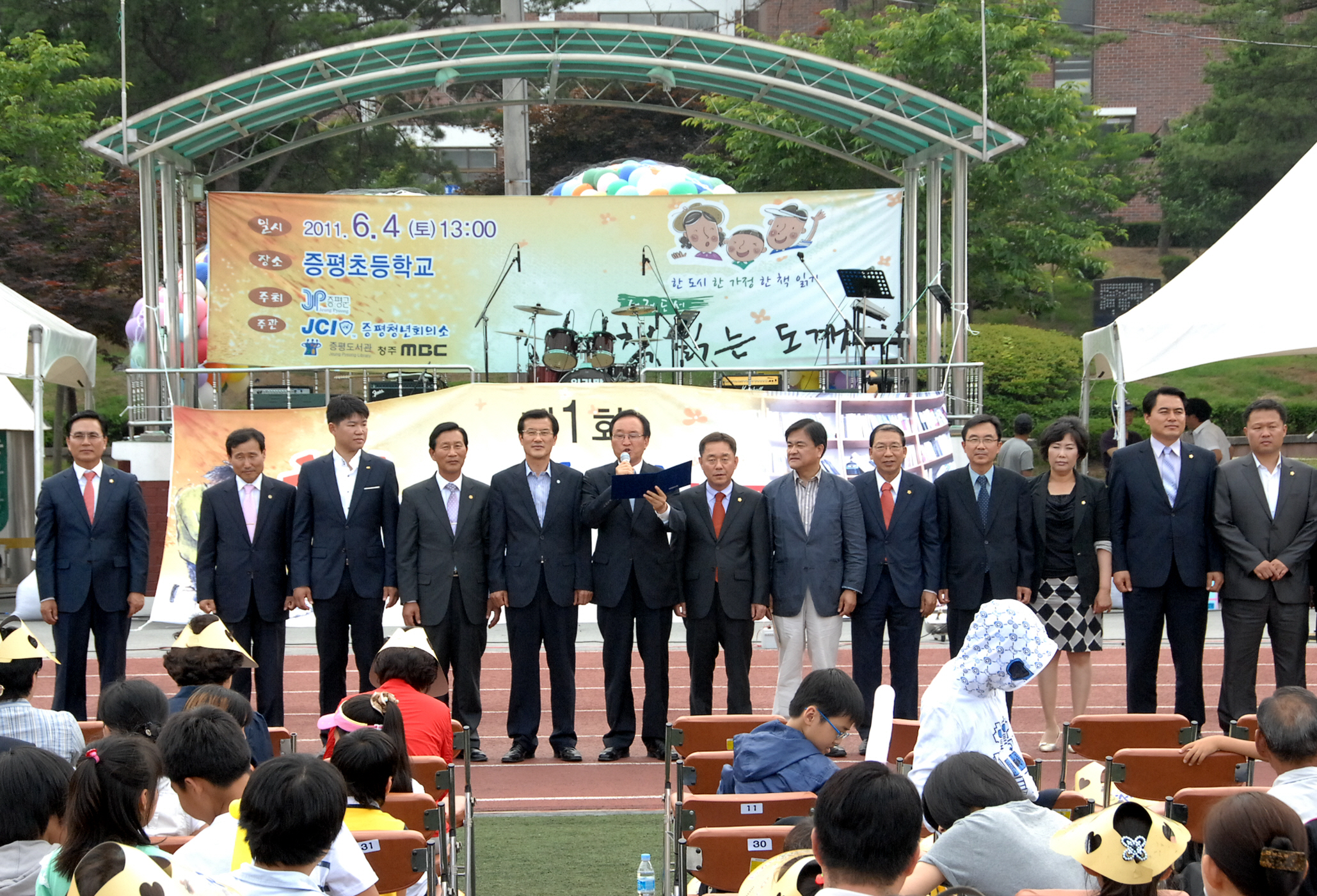 증평군에서는 책 읽는 문화를 확산시키기 위해 4일 오후 1시 증평초등학교 운동장에서 1,000여명의 주민들이 참여한 가운데 범 군민 독서운동인 ‘책으로 여는 증평’ 선포식을 개최했다.[보도자료실 참조]