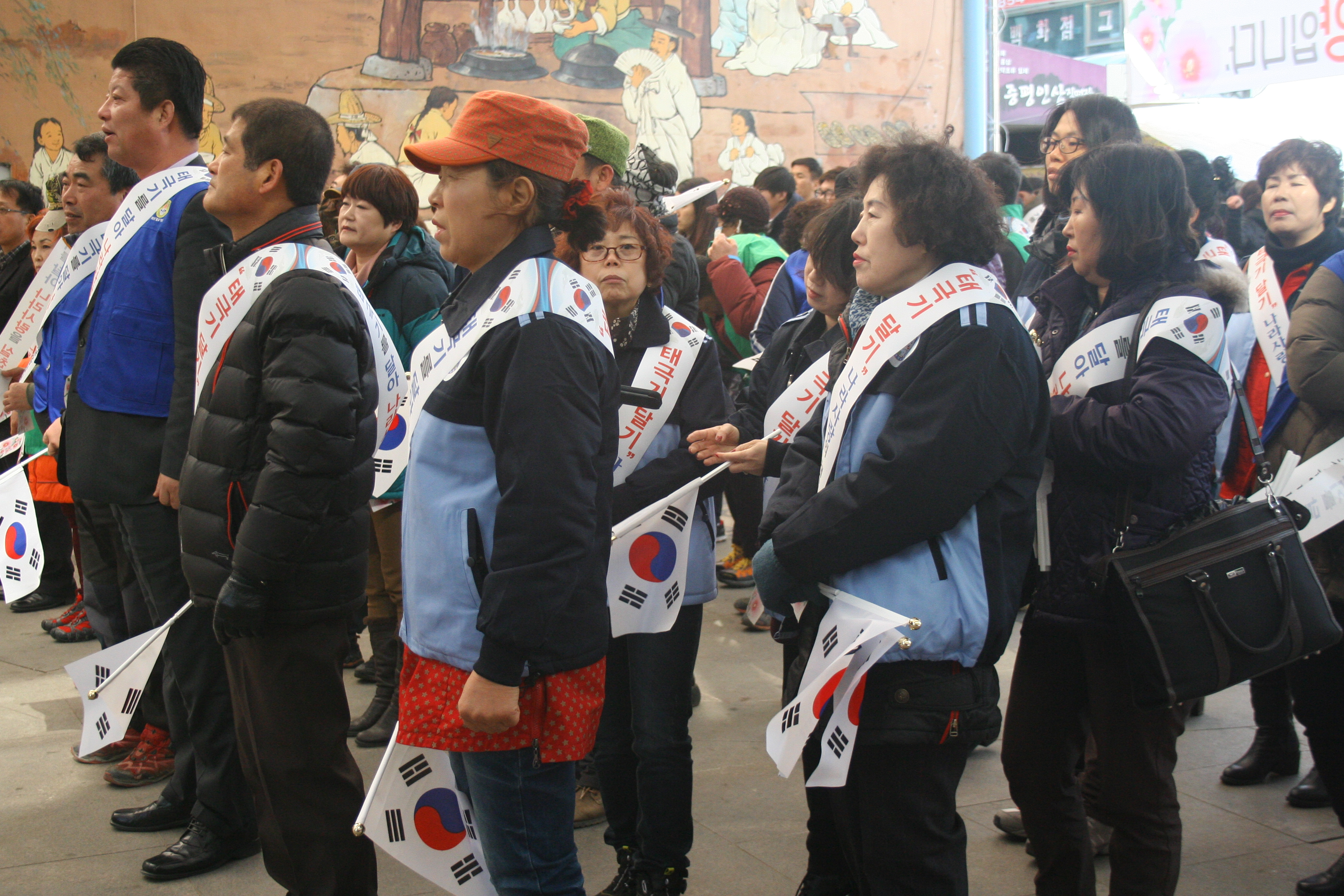 증평군은 26일 오후2시 장뜰시장 광장에서 광복 70주년의 해를 기념하기 위해 나라사랑 태극기 달기 운동을 전개했다. [증평보도자료실 참조]