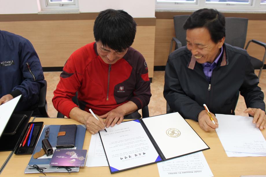 증평군농업기술센터가 28일 증평읍 사곡리 농업기술센터에서‘신규농업인 선도농가 현장실습 교육 멘토(선도농가)‧멘티(신규농업인) 협약식’을 열었다.(보도자료실 참조)
