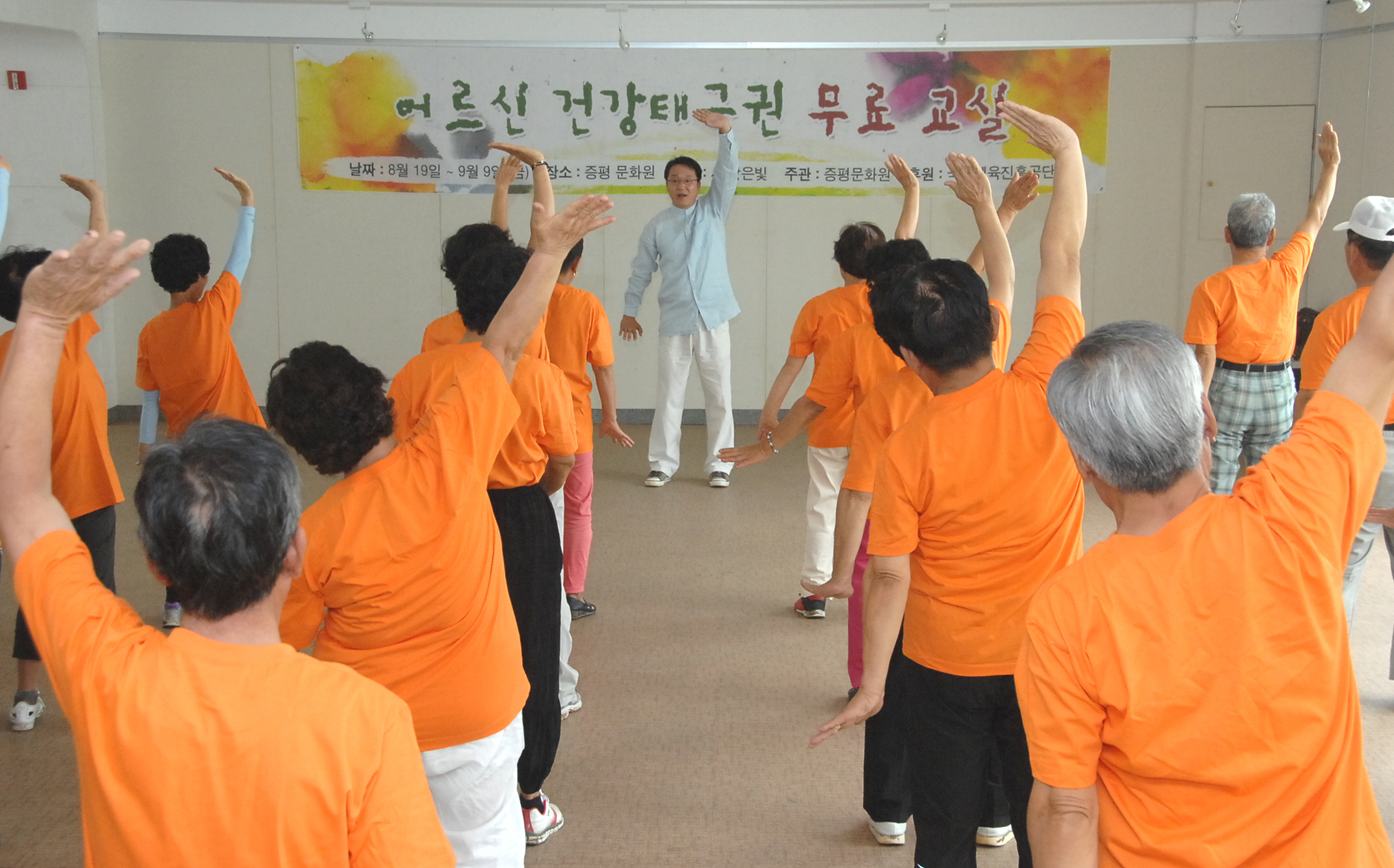 증평문화원(원장 최건성)이 어르신들의 관절염 예방에 도움을 주는 ‘건강 태극권’ 특별 강좌를 마련해 참가한 30여명의 어르신들로부터 큰 호응을 얻고 있다.[보도자료실 참조]
