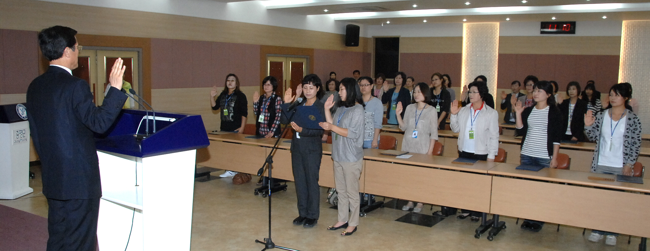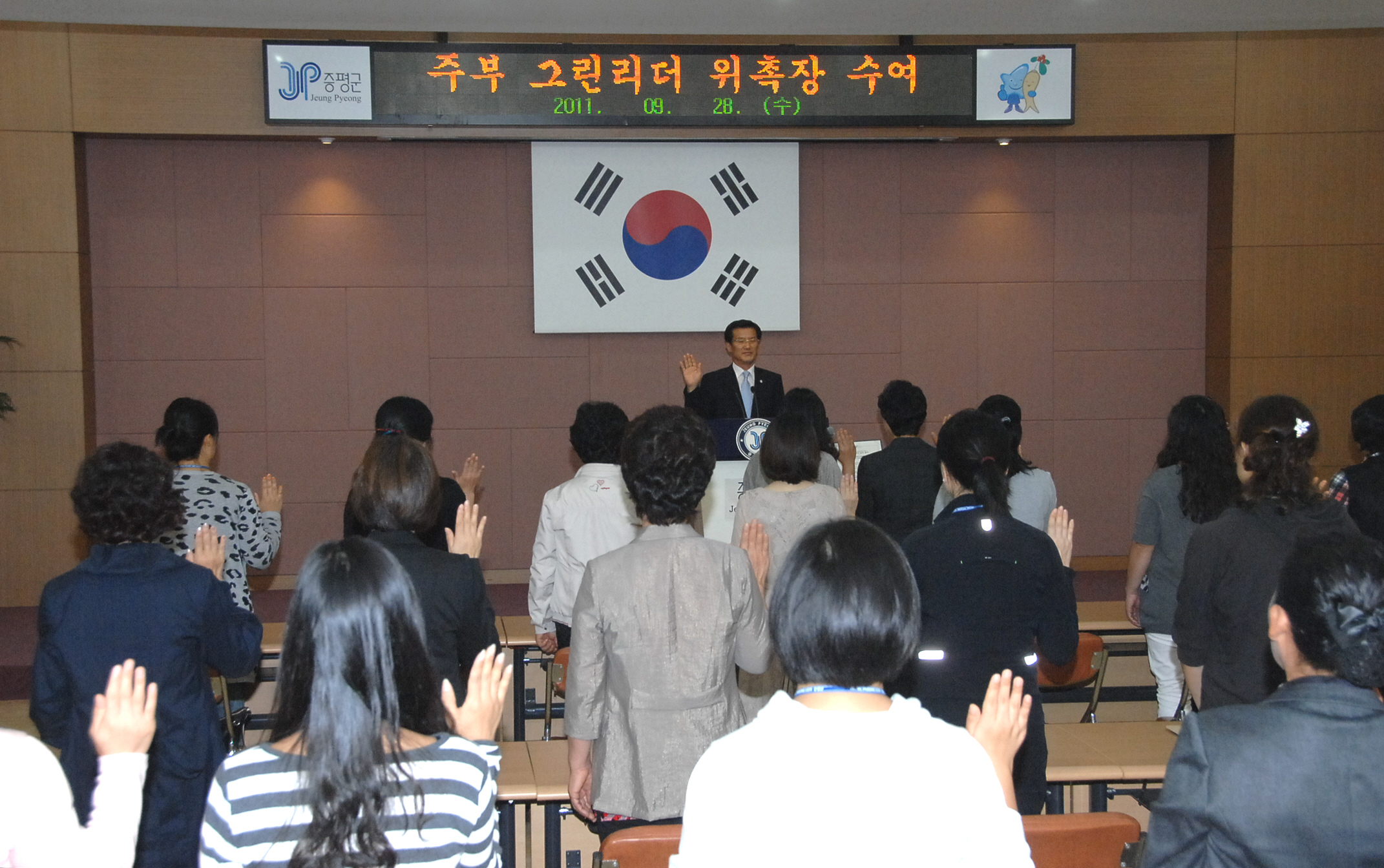 증평군은 28일 증평군청 대회의실에서 이달 초 선착순으로 모집한 주부그린리더 30명중 그린리더 양성교육을 수료한 26명의 주부 그린리더에 대해 위촉장을 수여했다. [보도자료실 참조]
