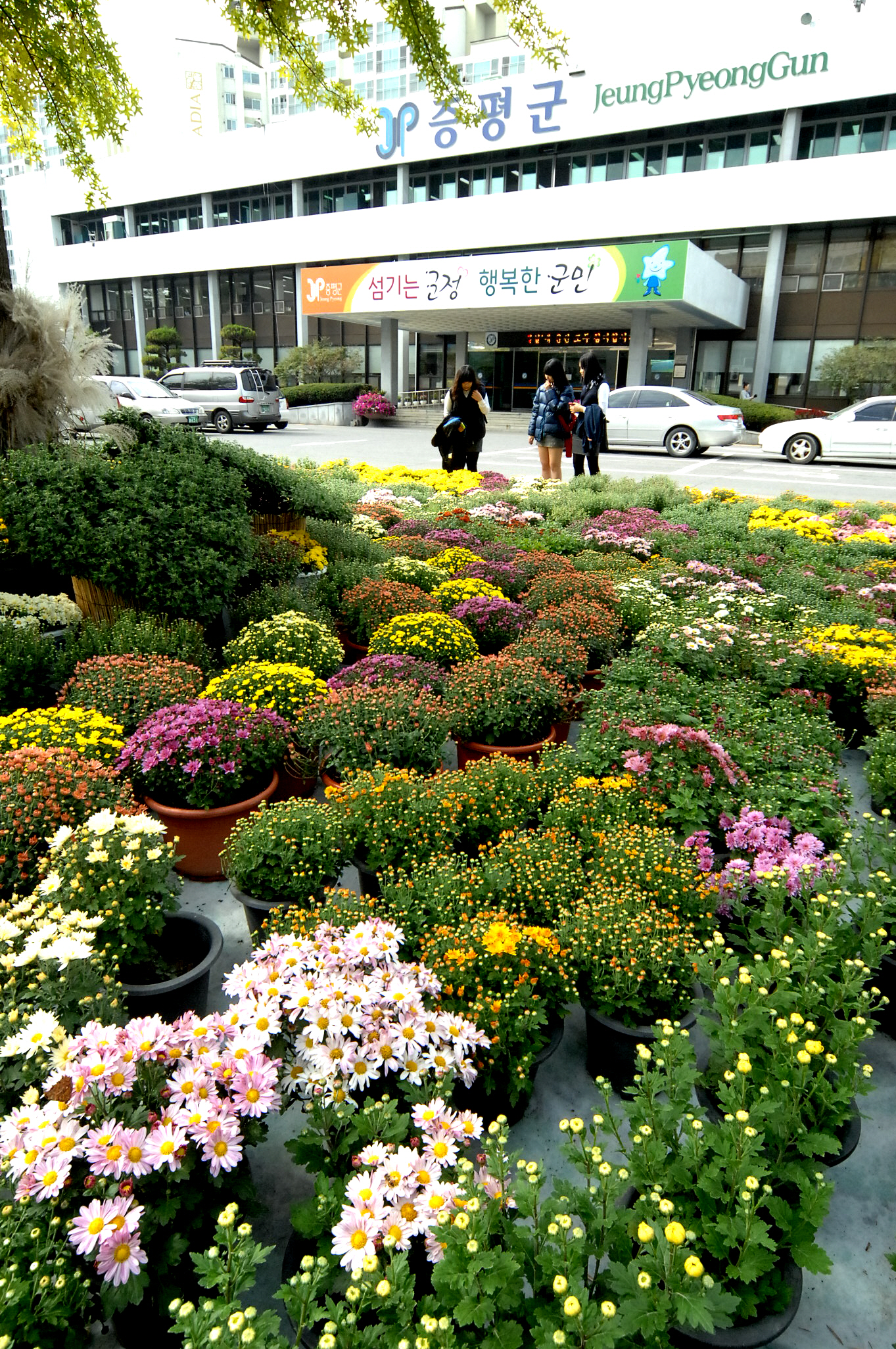 증평군 청사에 가을 국화 향기 물씬