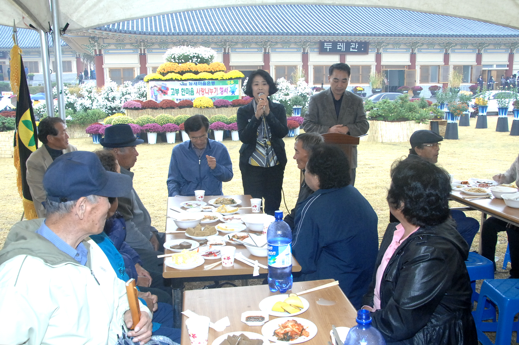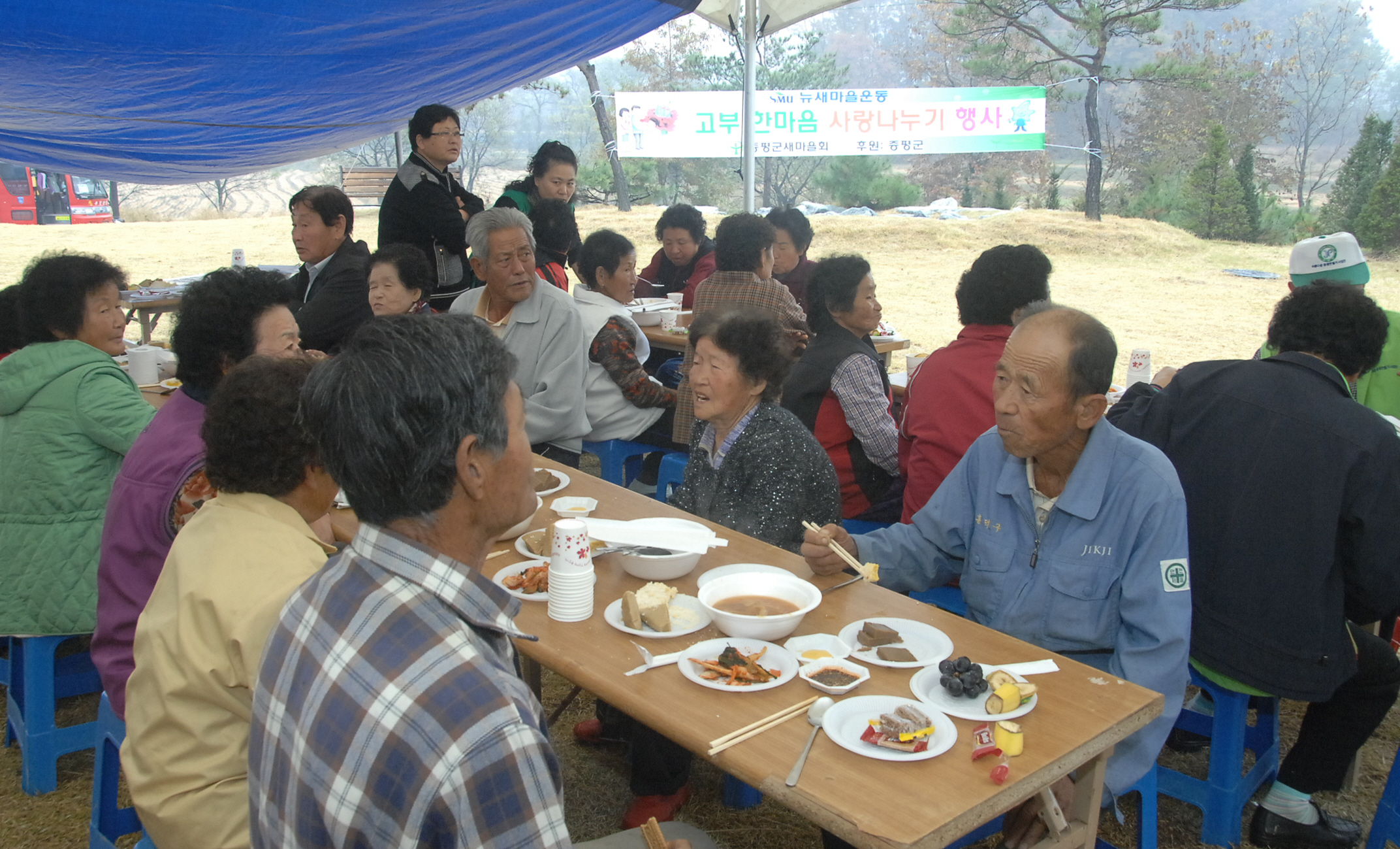 증평군 새마을부녀회(회장 김묘현)에서는 29일 오전 11시 30분 증평읍 남하리 둔덕마을 민속체험박물관에서 지역 내 독거노인 100여명을 초청해 점심식사를 대접하는 한편 박물관을 관람하도록 하는 "고부 한마음 사랑나누기" 행사를 개최 했다.[보도자료실 참조]