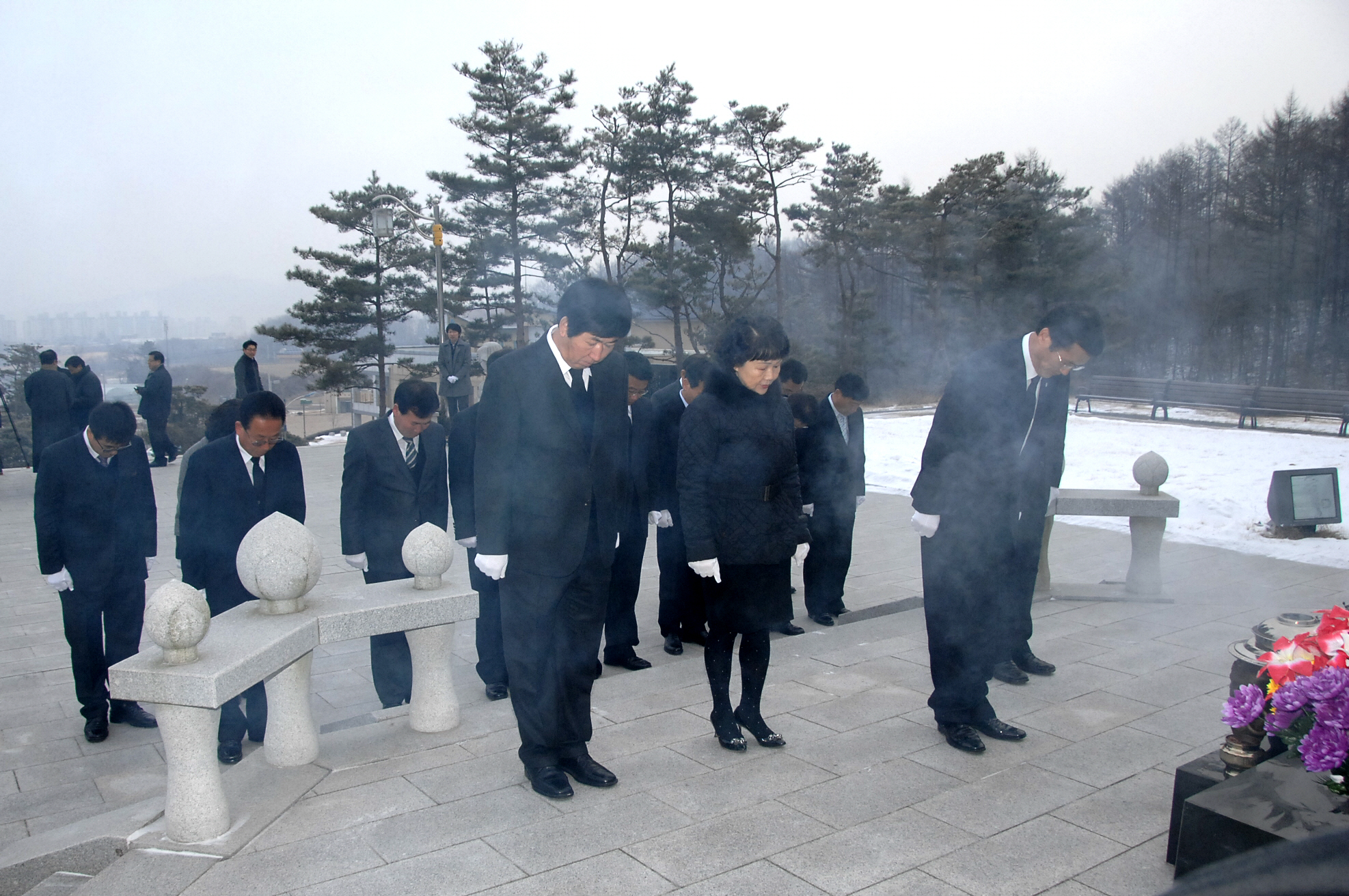 홍성열 증평군수를 비롯한 공직자들은 2일 오전 9시 군청대회의실에서 시무식을 갖고 2011년 힘찬 출발을 다짐했다. 이날 시무식에 앞서 홍성열군수를 비롯한 간부공무원들은 8시30분에 증평읍 내성동 충혼탑을 찾아 헌화 분향하고 참배했다. [보도자료실 참조]