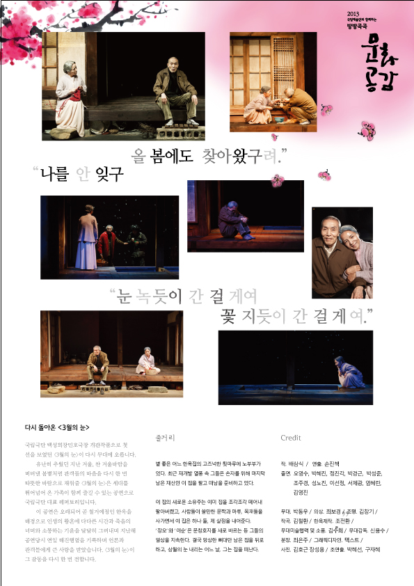 증평군은 문화체육관광부가 주최한 2013 국립예술단 방방곡곡문화공감사업에 선정돼 명품공연 ‘3월의 눈’을 오는 15일 증평문화회관에서 선보인다. [증평보도자료실 참조]