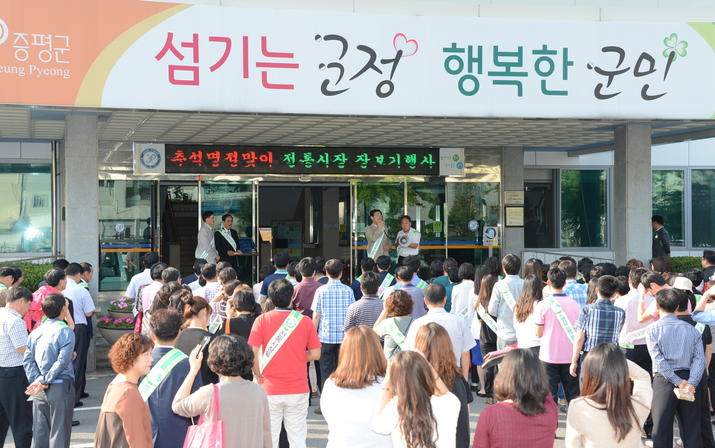 증평군은 추석명절을 앞두고 17일 오후 4시부터 증평장뜰전통시장에서 전통시장 장보기 행사를 개최했다. [보도자료실 참조]