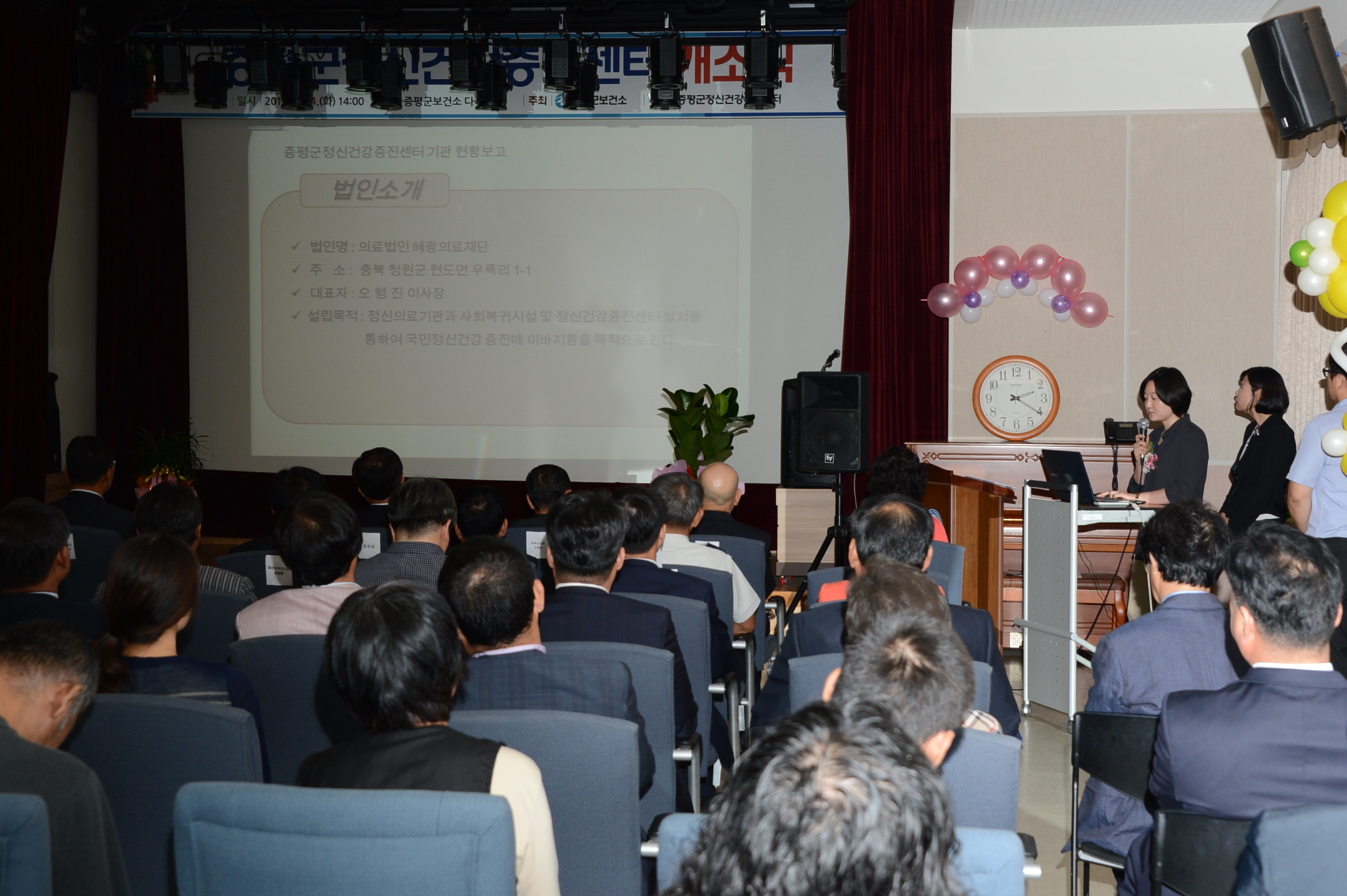 증평군은 24일 오후 2시에 군 보건소 다목적실에서 홍성열 증평군수를 비롯한 지역인사 및 지역주민 등 100여명이 참석한 가운데 증평군 정신건강증진센터 개소식을 개최했다. [보도자료실 참조]