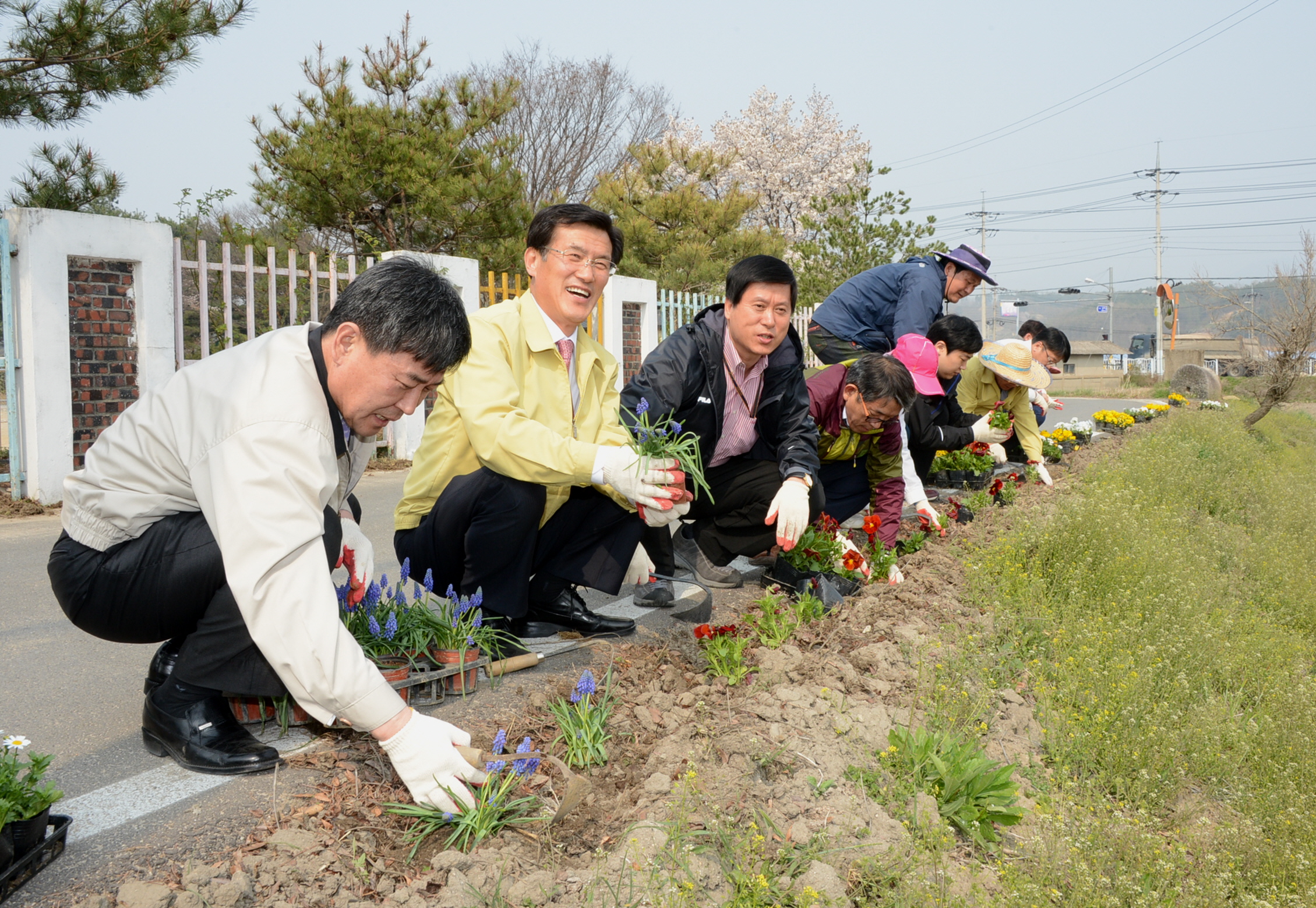 농림축산식품부 직원과 증평군 증평읍 죽리 마을주민이 ‘함께하는 농촌운동 마을 가꾸기’ 일환으로 꽃·나무 식재 행사를 10일 오후2시 증평읍 죽리 삼보산골마을에서 개최했다. [보도자료실 참조]