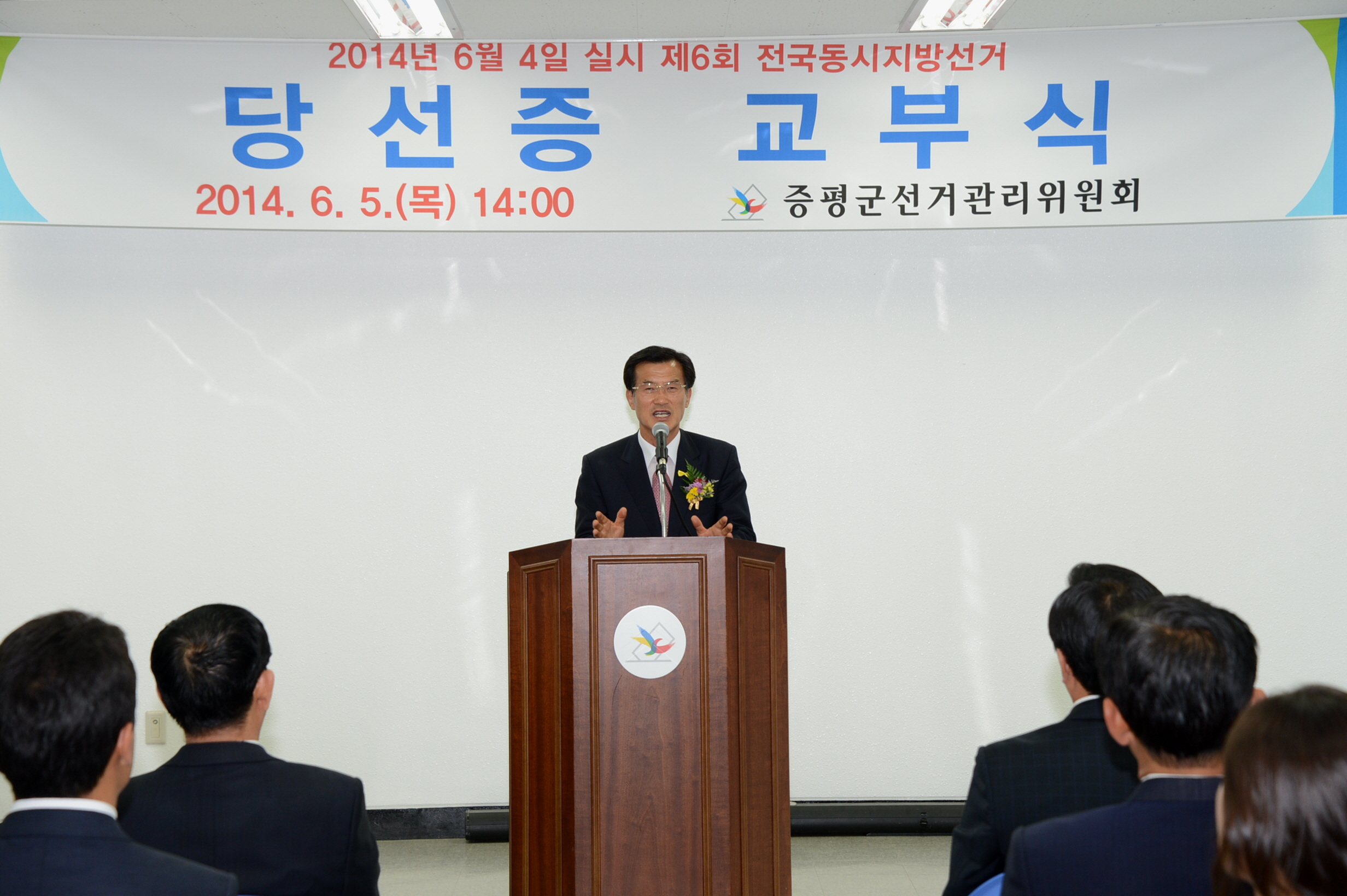 제6회 전국동시지방선거 당선증 교부식이 5일 오후2시 증평읍 초중리 증평군선거관리위원회 2층 회의실에서 열렸다.