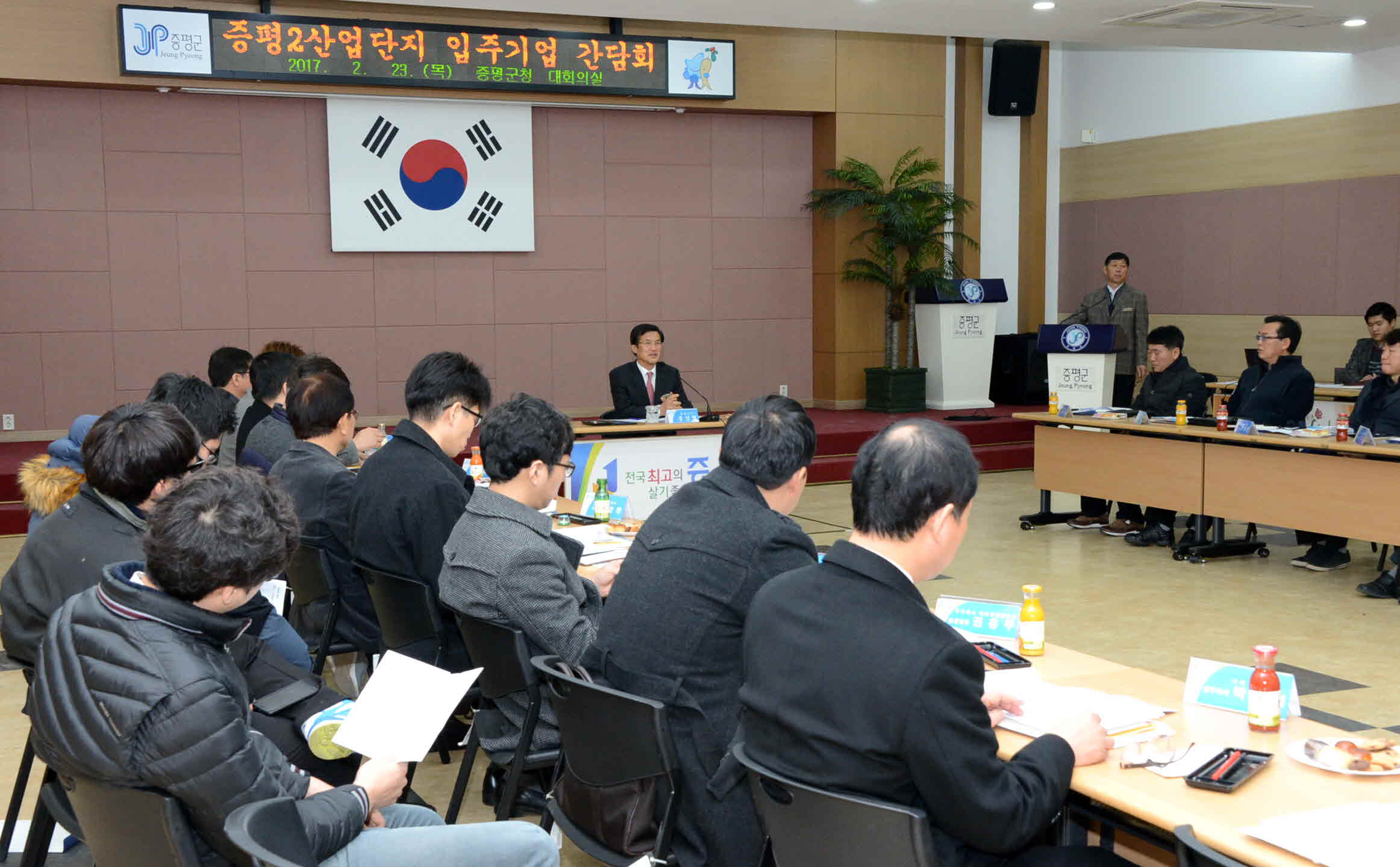 증평군은 23일 군청 2층 대회의실에서 홍성열군수를 비롯해 증평 2산업단지 입주 업체 대표와 관계자 등 40여명이 참석한 가운데 간담회를 개최했다.(보도자료실 참조)