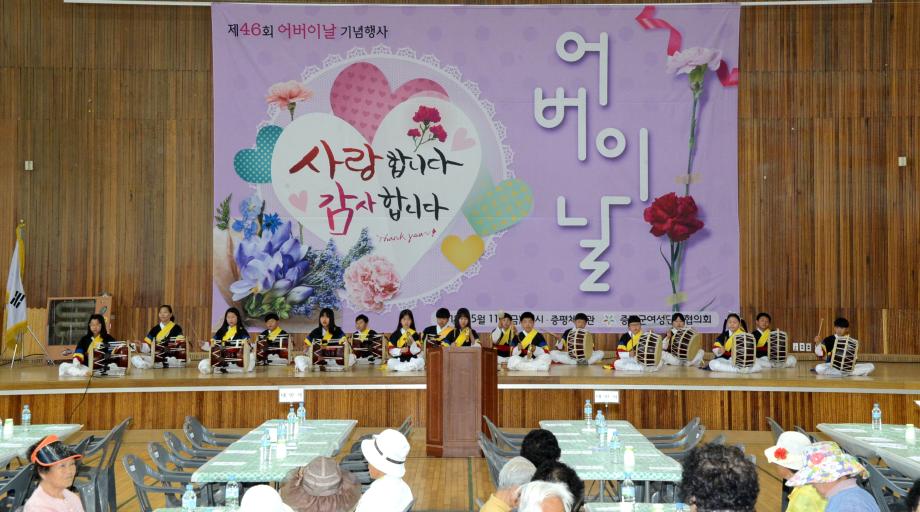 증평군여성단체협의회(회장 이상원)가 주관하는 제46회 어버이날 기념행사가 11일 증평군 실내체육관에서 각급 기관단체장과 어르신 및 가족 등 1000여명이 참여한 가운데 열렸다.(보도자료실 참조)