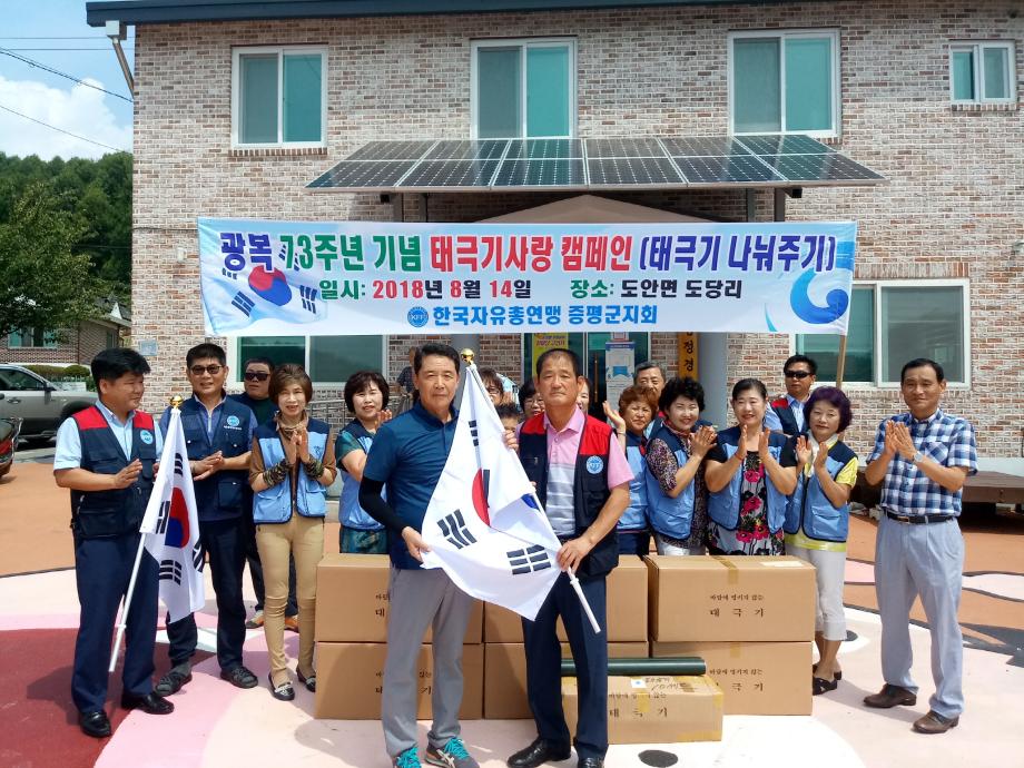 한국자유총연맹 증평군지회(회장 송원호)는 태극기 사랑 운동캠페인을 실시하며 광복절의 의미를 되새겼다.