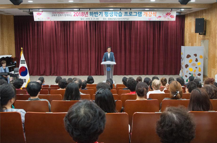 군은 21일 증평읍 송산리 증평군립도서관에서 개강식을 열고 오는 12월 21일 까지 4개 분야 18개 과정의 프로그램을 운영한다.