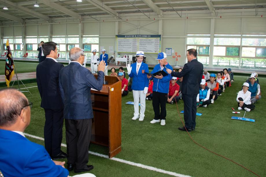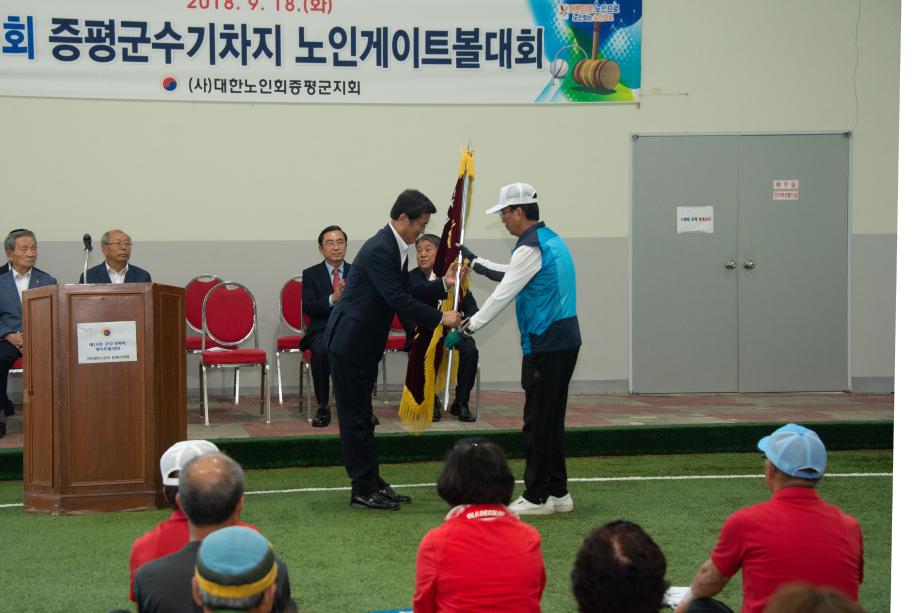(사)대한노인회증평군지회(지회장 연훈흠) 주관 제15회 증평군수기차지 게이트볼대회가 18일 증평읍 송산리 송산게이트볼장에서 개최됐다.