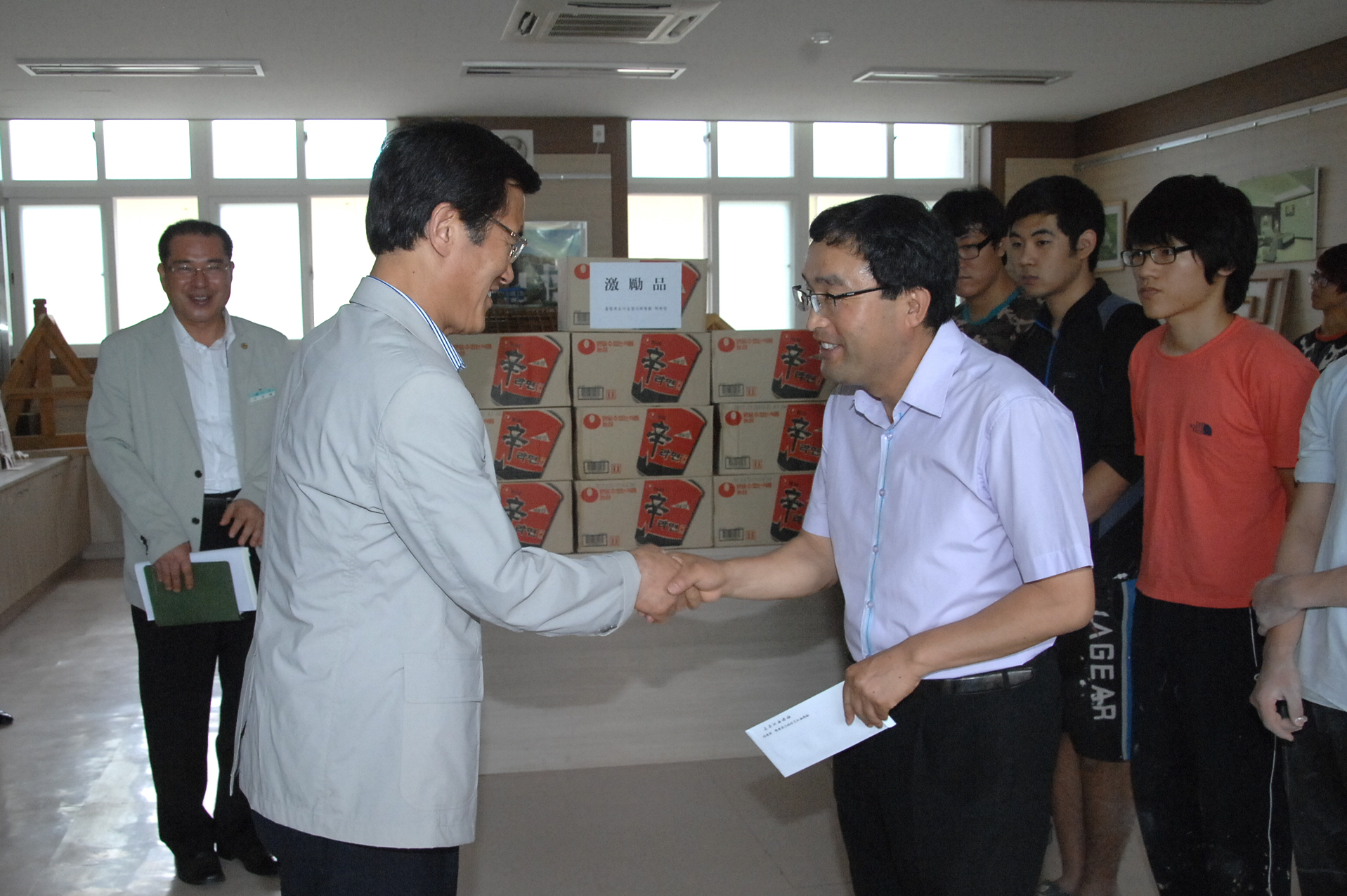 홍성열 증평군수, 김봉회 충북도의회산업경제위원장, 정희택 한국산업인력공단 충북지사장, 김재영 충북도 일자리창출과장 등은 21일 오전 11시 증평공업고등학교를 방문해 오는 8월30일부터 9월5일까지 증평공고에서 열리는 제46회 전국기능경기대회를 앞두고 훈련중인 증평공고 선수들을 격려했다. [보도자료실 참조]
