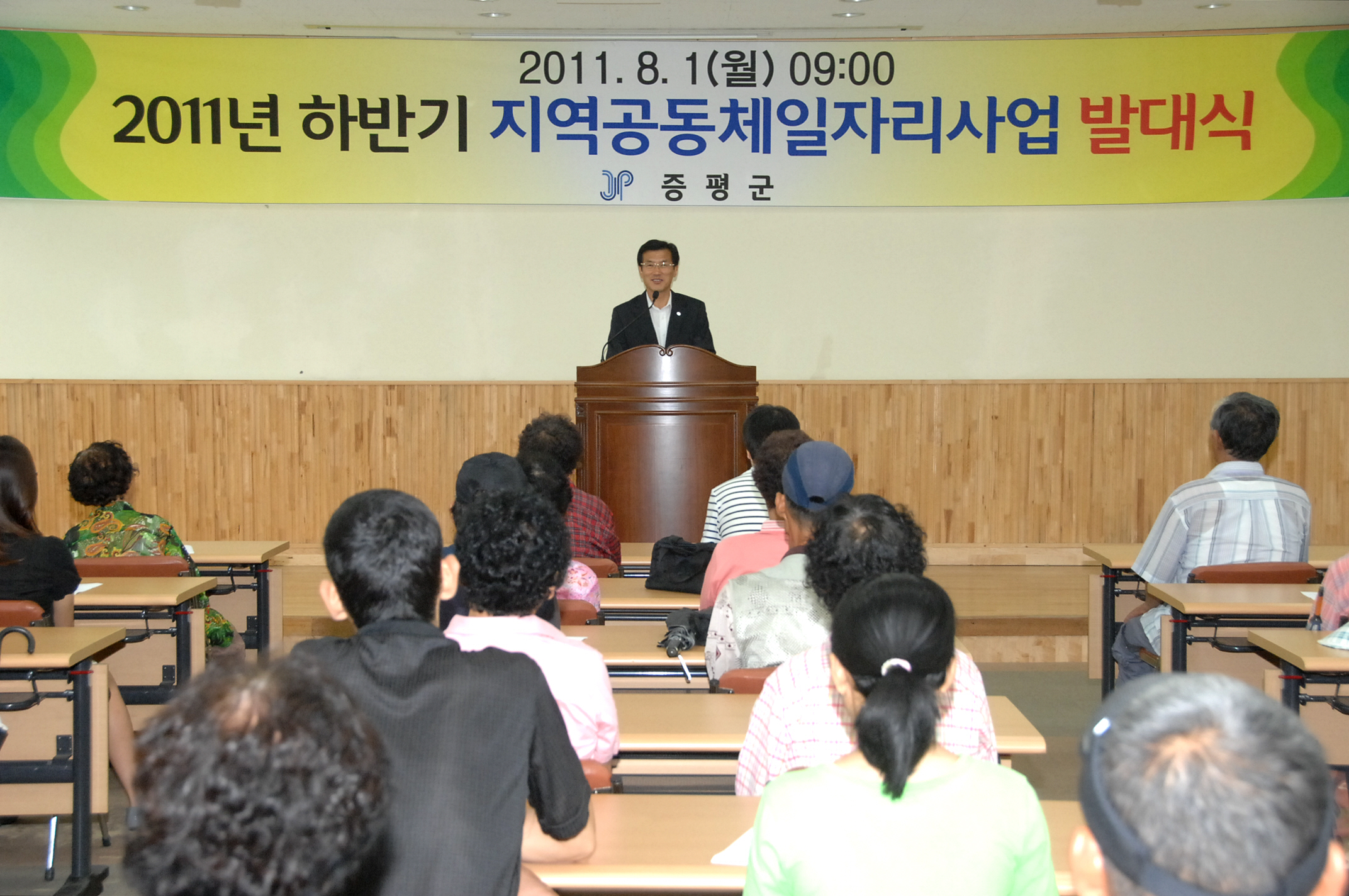 증평군은 1일 증평읍사무소 회의실에서 홍성열 군수, 지역공동체 일자리사업 선정자 및 관계공무원 등 50여명이 참석한 가운데 ‘2011 하반기 지역공동체 일자리사업’발대식을 가졌다. [보도자료실 참조]