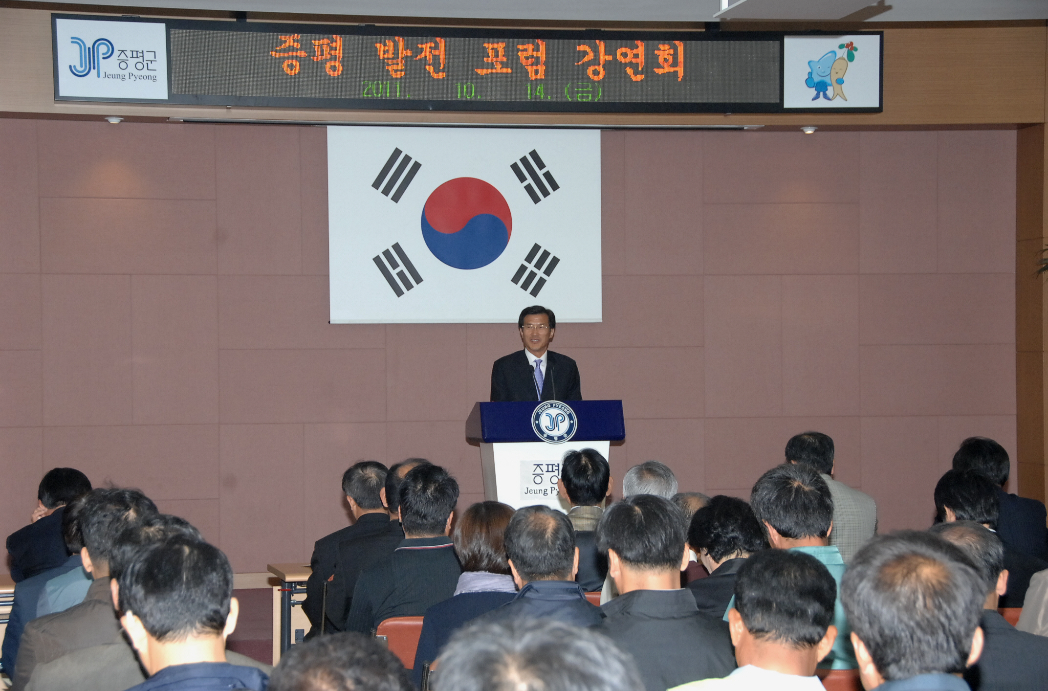 증평발전포럼(회장 김기환)은 14일 오후 2시 증평군청 대회의실에서 지역의 발전방향을 모색하는 지역발전 전략 강연회를 개최했다.[보도자료실 참조]