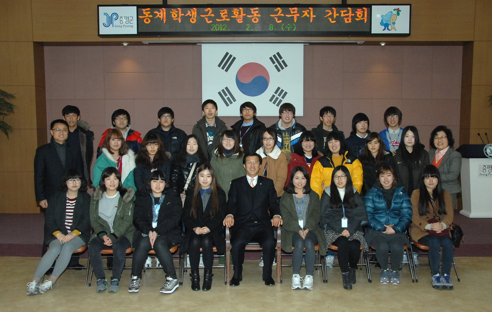 동계학생근로활동 근무자 간담회가 8일 오후 2시 군청2층 회의실에서 홍성열군수, 연재윤 행정과장을 비롯한 군 관계자와 근로 활동 학생 등 30여명이 참석한 가운데 열렸다.