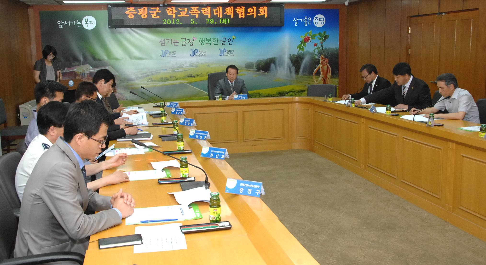 증평군은 29일 군청에서 학교폭력예방을 위한 지역대책회의를 개최하고 지난 1월과 2월에 걸쳐 시도교육청에서 실시한 ‘학교폭력 실태 전수조사 결과’에 대한 보고와 그에 따른 후속 처리방안을 논의했다.[보도자료실 참조]
