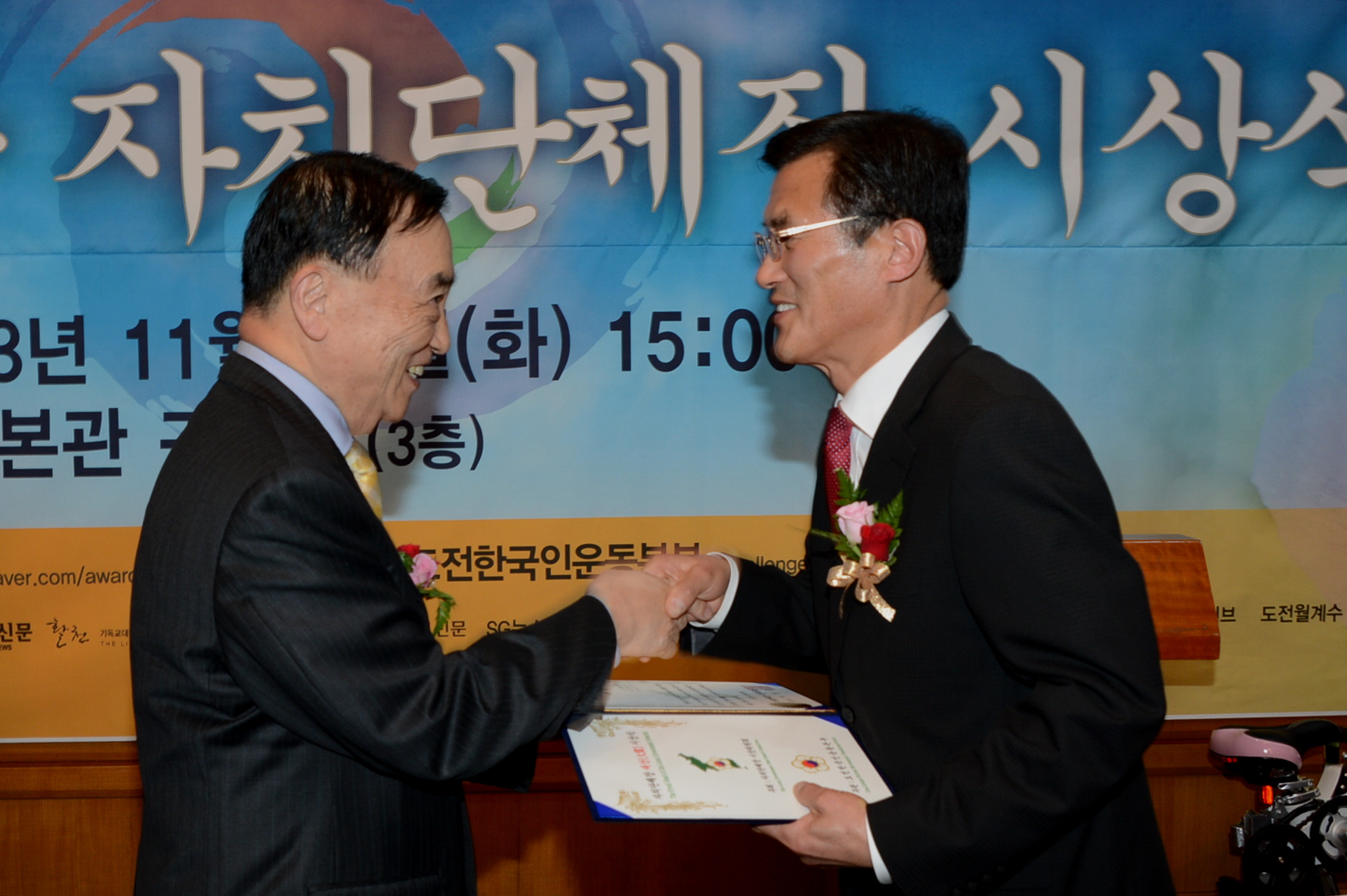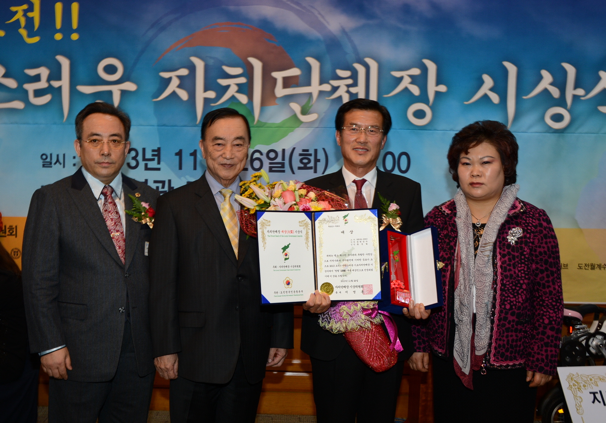 홍성열 증평군수가 ‘도전 한국인운동본부’가 주관하고 국회행정안전위원회가 후원한 ‘제1회 자랑스러운 자치단체장 청렴부문 대상’ 수상자로 선정되어 6일 오후 3시 국회본관 귀빈실에서 대상을 받았다[11월22일 보도자료 참조]