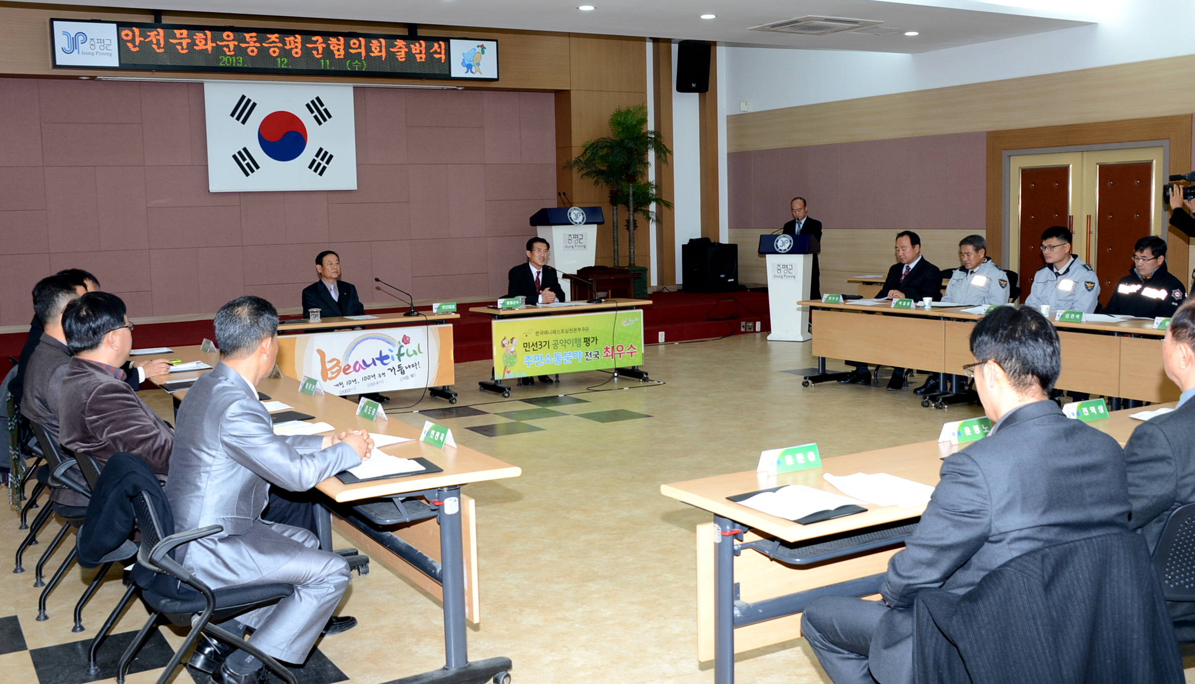 증평군은 11일 오전11시 군청 대회의실에서 민·관 공동네트워크를 구축하고 범주민적 안전문화운동 확산을 위한 ‘안전문화운동 추진 증평군협의회’를 출범했다. [보도자료실 참조]