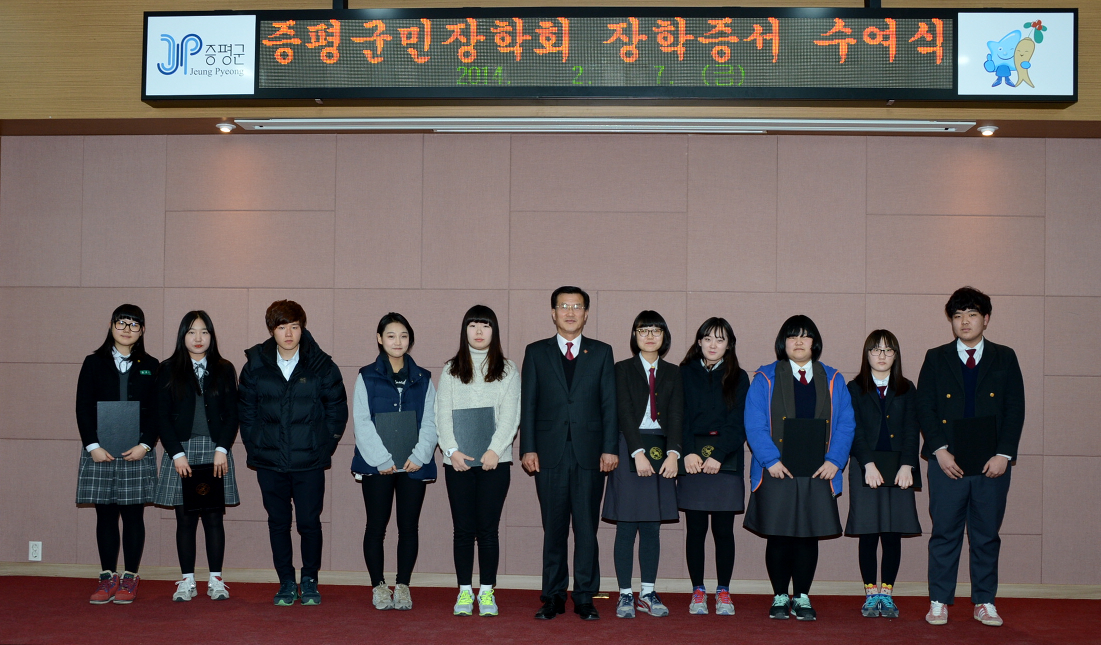 증평군민장학회(이사징 홍성열증평군수)는 7일 오후5시 군청2층 회의실에서 고교 및 대학 장학증서 수여을 가졌다.
