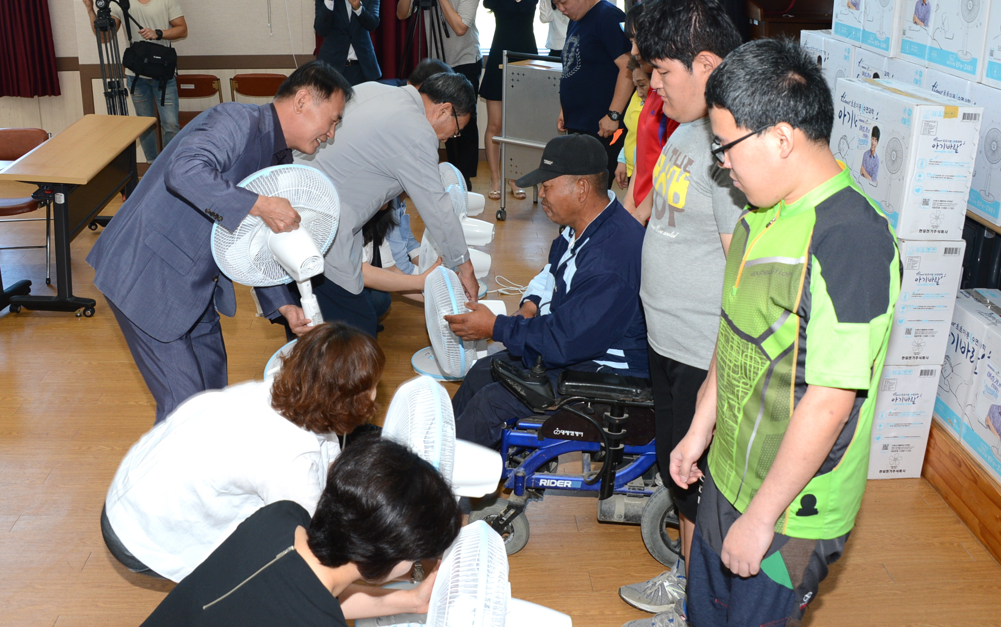 증평군장애인복지관에서는 2일 오전 11시 KBS강태원복지재단’과 ‘DC이승기갤러리’관계자 등 22여명이 참석한 가운데 저소득 가정 지원을 위한 선풍기 전달식을 가졌다.(보도자료실 참조))