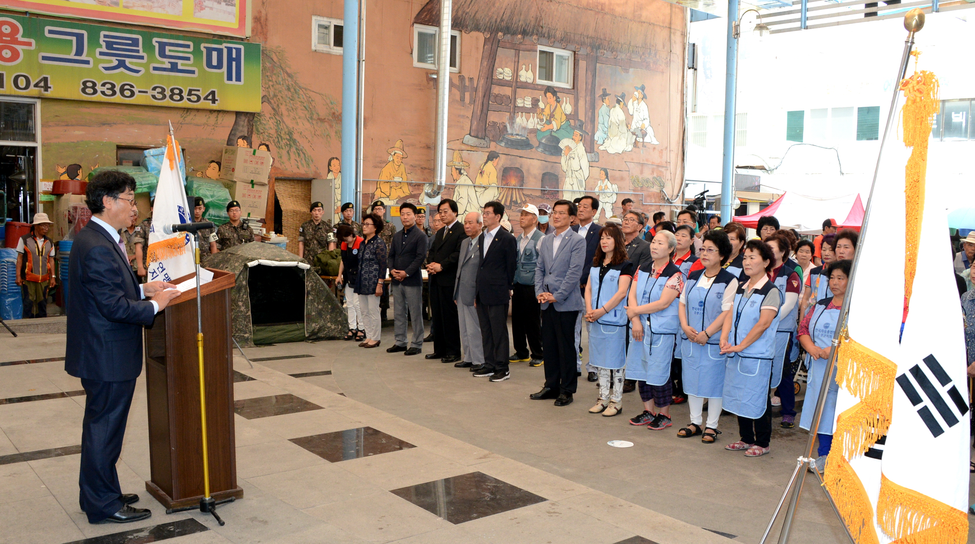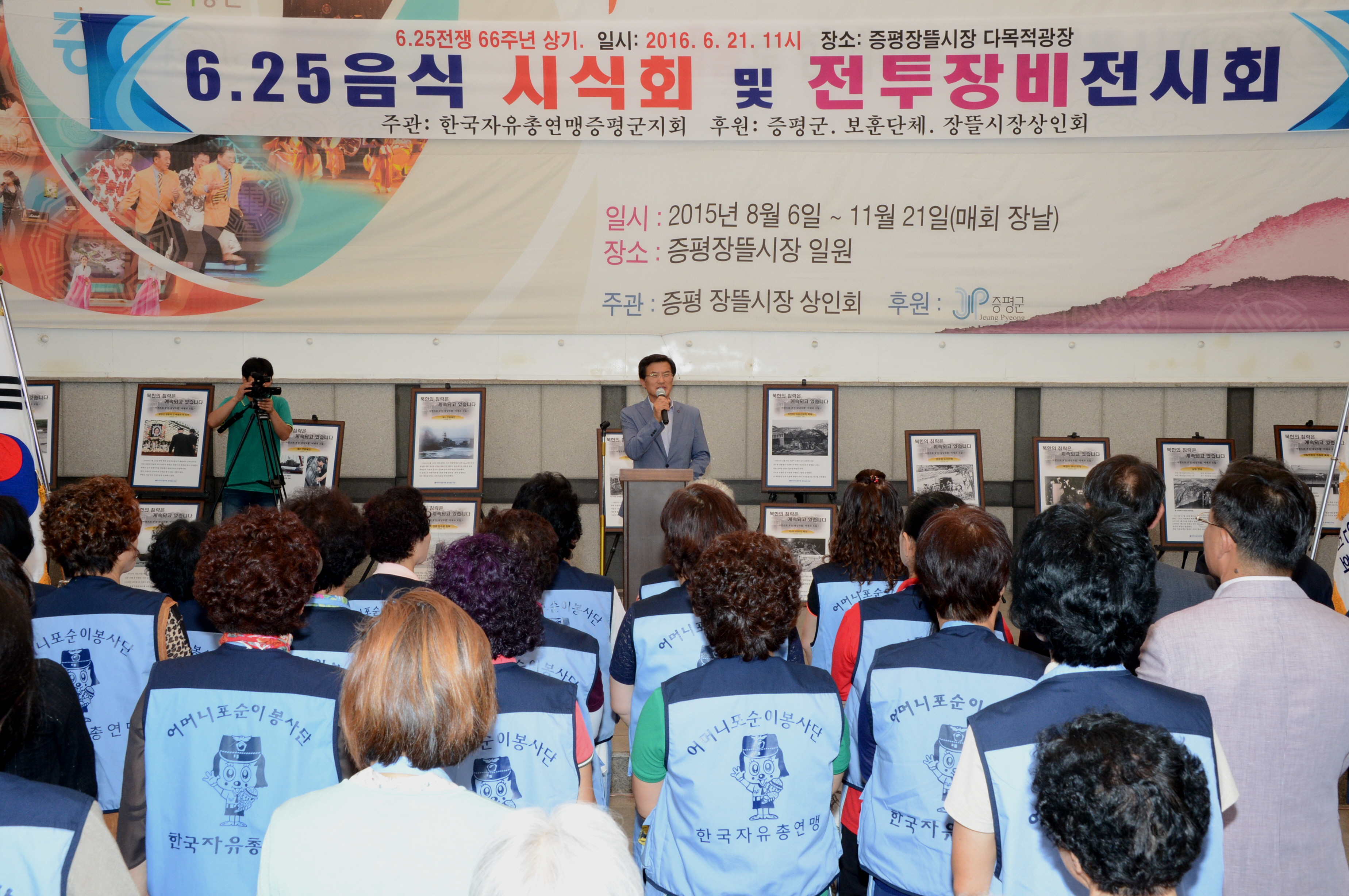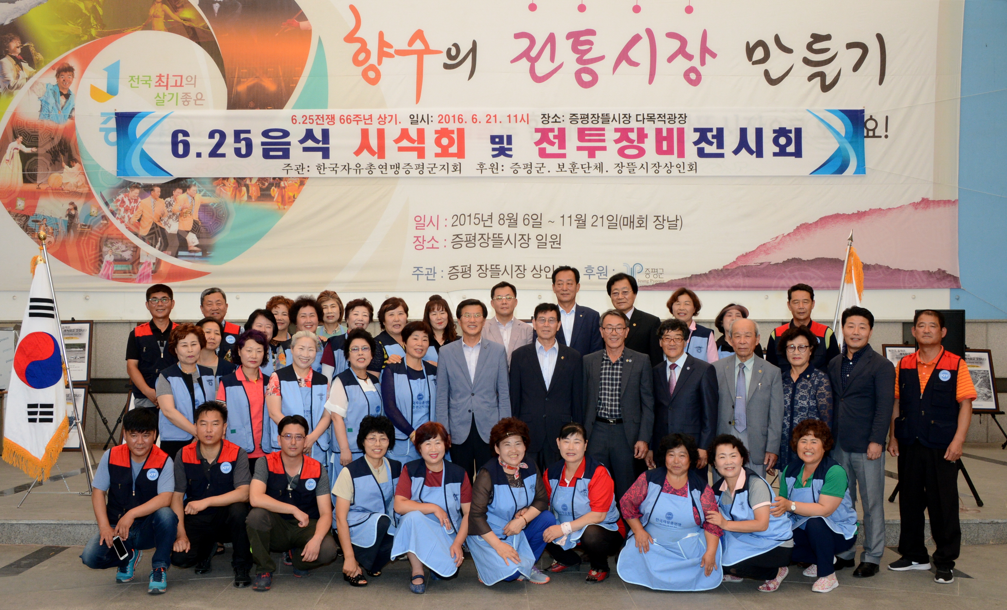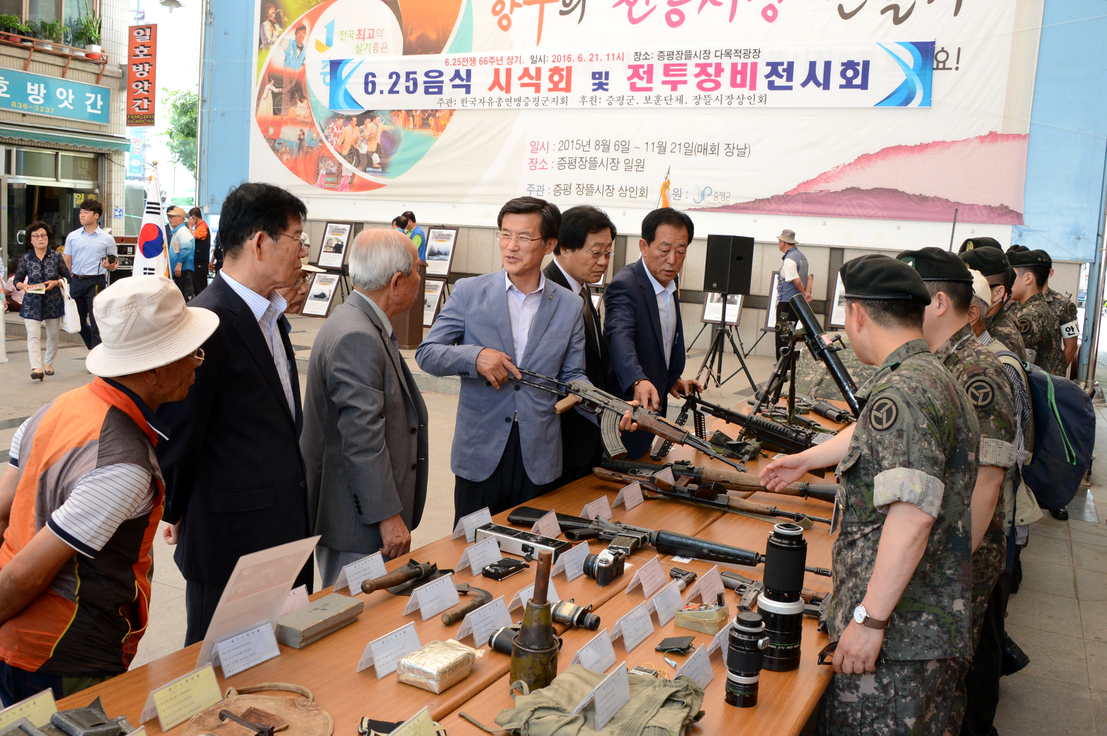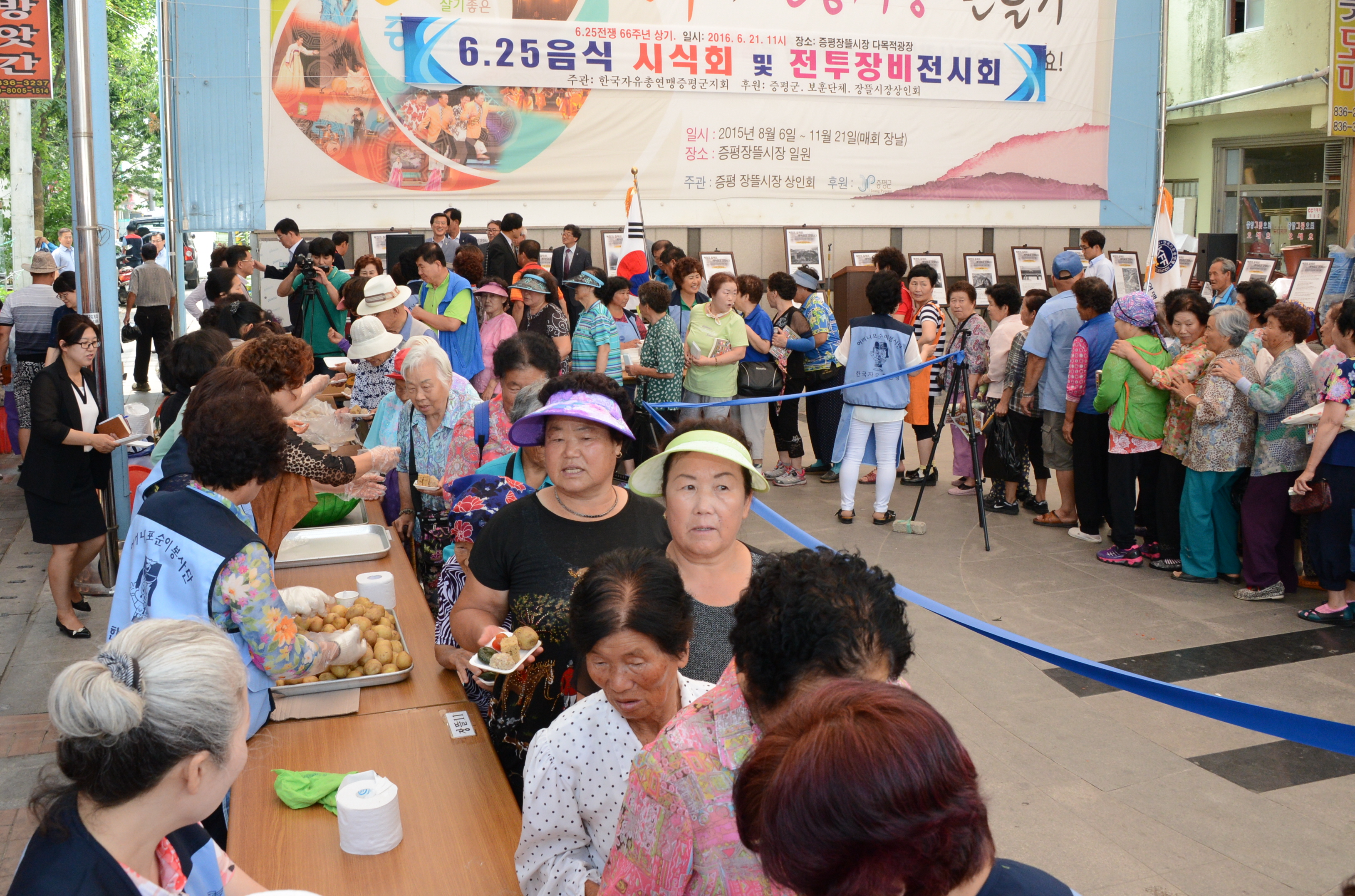 한국자유총연맹 증평군지회(회장 정태욱)는 21일 오전 11시 증평 장뜰시장 다목적광장에서 6.25 음식체험과 사진 및 전투장비전시회를 개최했다.(보도자료실 참조)