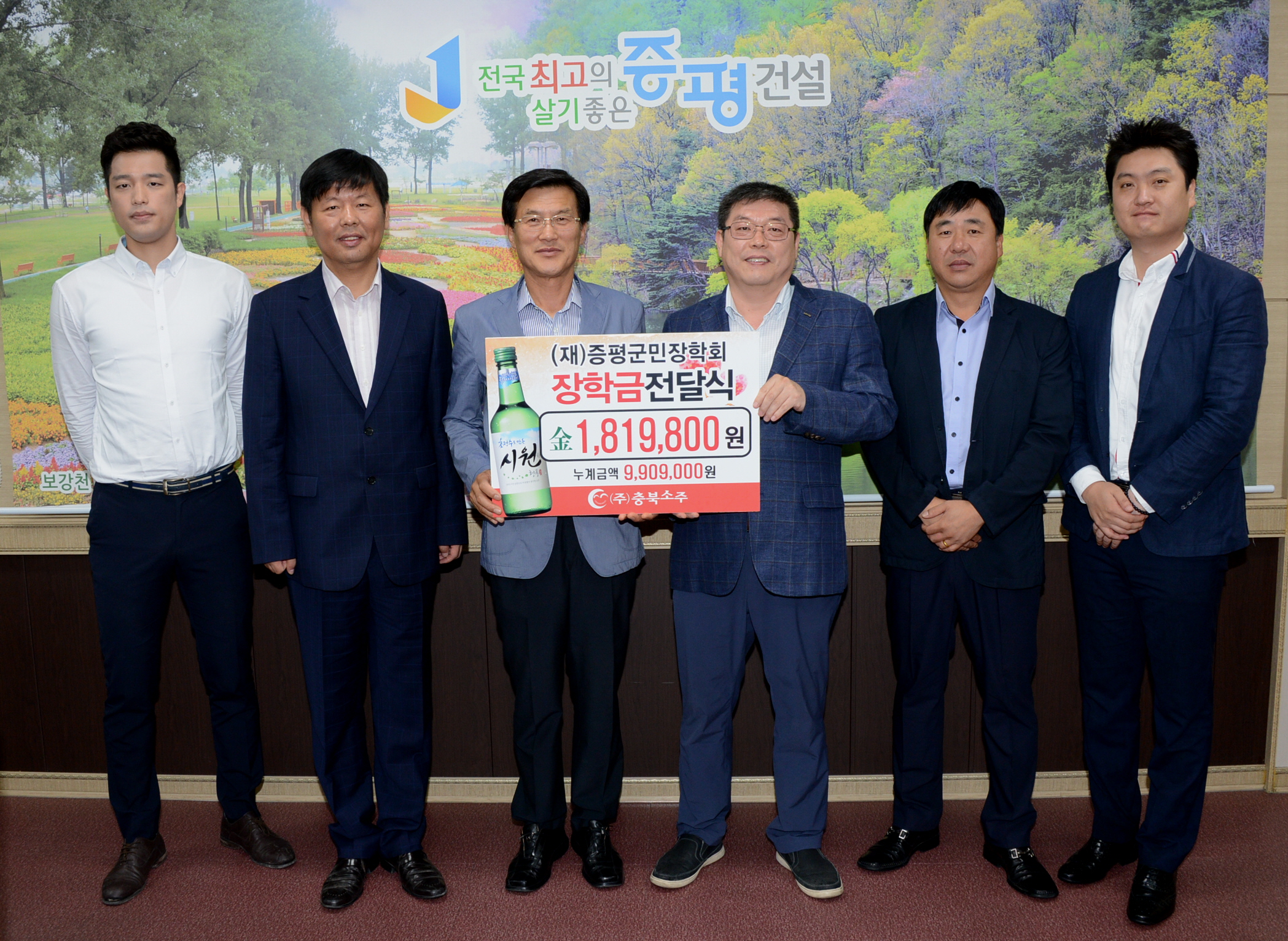 (주)충북소주(대표이사 이재혁)에서 26일 증평군청을 방문하여 (재)증평군민장학회(이사장 홍성열 증평군수)에 장학사업을 위한 장학기금 1,819,800원을 기탁했다.(보도자료실 참조)