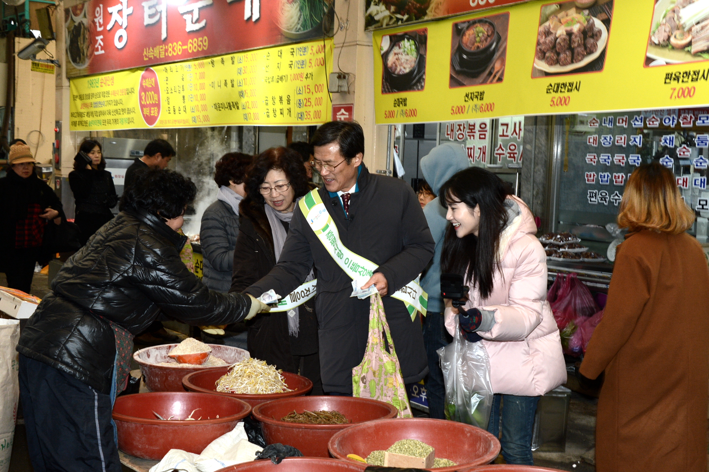 증평군은 설 연휴를 하루 앞둔 14일에 장뜰시장 일원에서 전통시장 장보기 행사를 실시했다.(보도자료실 참조)