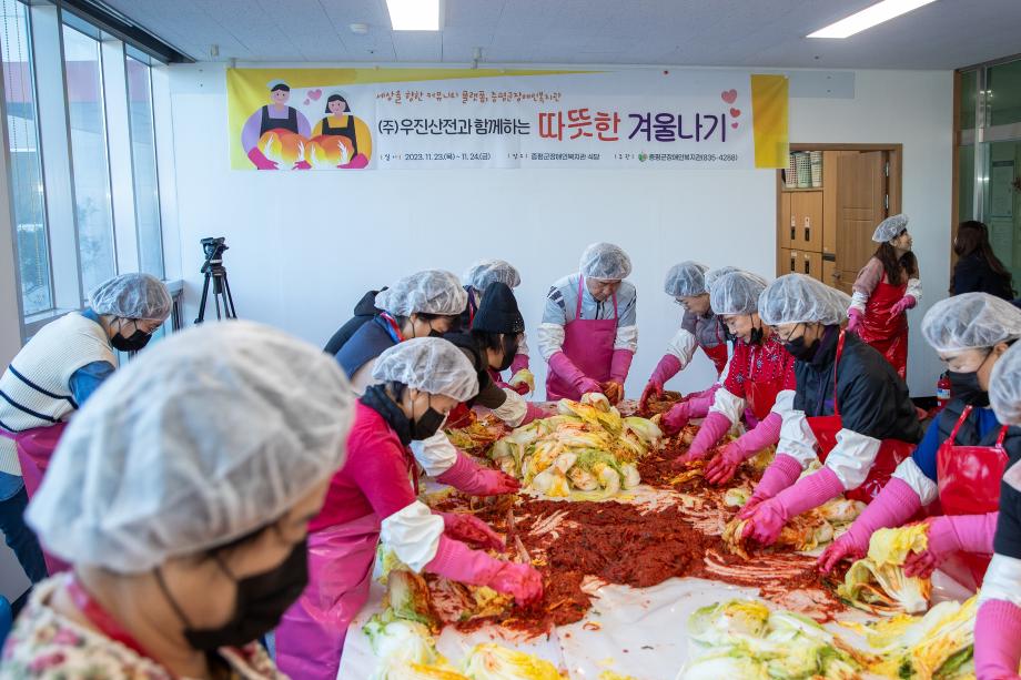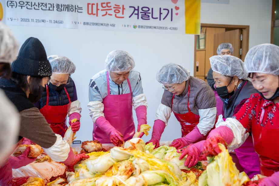 증평군장애인복지관(관장 정찬연)은 지난 23, 24일 이틀간 지역 내 재가장애인의 따뜻한 겨울나기를 위해 모두의 온정을 모아 사랑의 김장 나눔 행사를 실시했다.