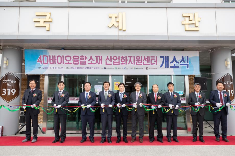 증평군은 9일 한국교통대 증평캠퍼스 국제관에서 4D바이오융합소재 산업화 지원센터 개소식 및 GMP동 착공식을 열었다고 밝혔다.