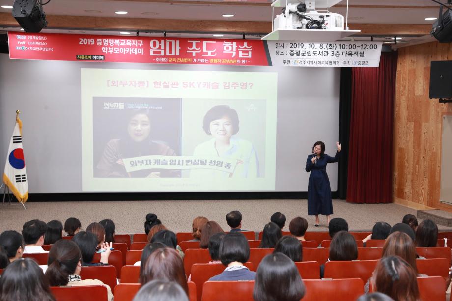 증평군은 증평행복교육지구 사업의 일환으로 8일 증평읍 송산리 증평군립도서관에서 ‘대치동 샤론코치’로 유명한 이미애 강사(샤론코치연구소 대표) 초청 학습코칭 특강을 운영했다.