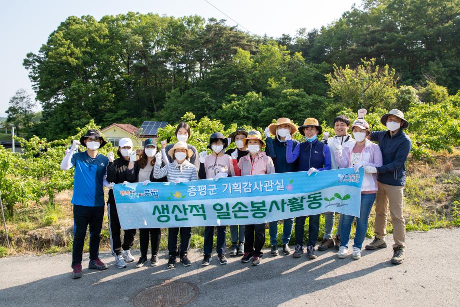 증평군 공직자 80여 명은 23일 지역 곳곳에서 생산적 일손봉사를 펴며 코로나19 장기화로 인력 수급에 큰 어려움을 겪는 농가의 시름을 덜어줬다.