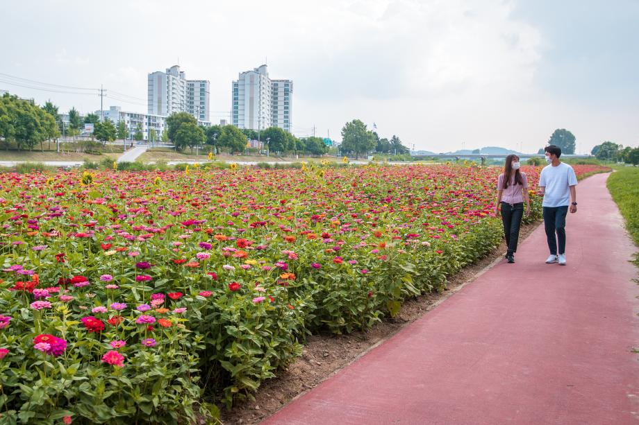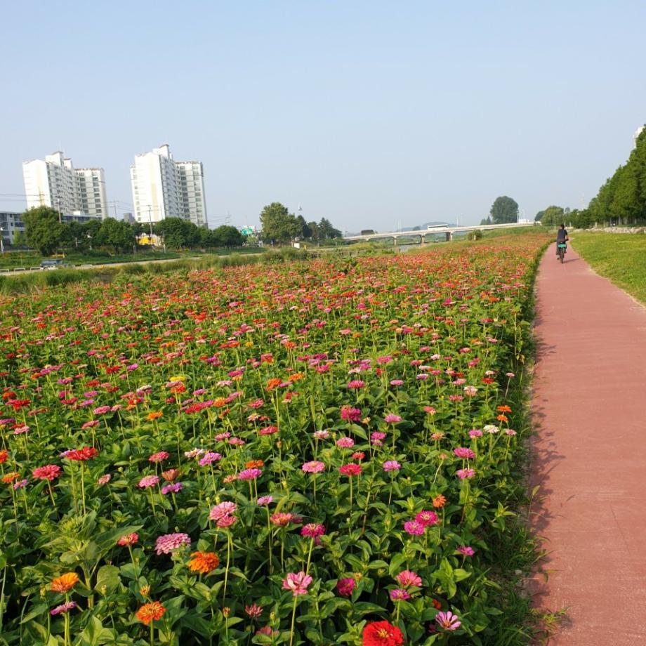 증평군이 여름철을 맞아 군청, 주요도로변, 미루나무숲 등 군 일원에 꽃길을 조성했다.