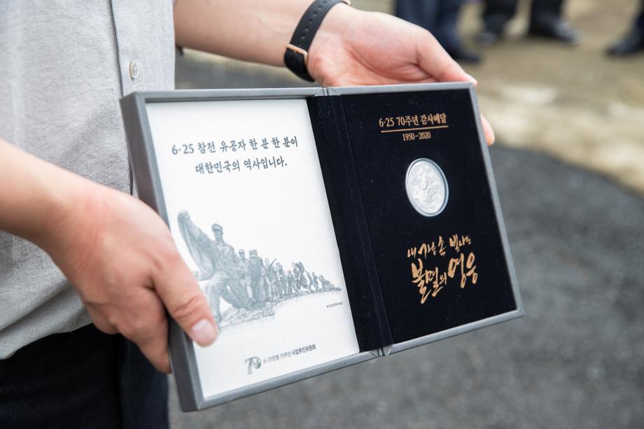 증평군은 28일 6·25전쟁 70주년을 맞아 6·25전쟁과 월남전 참전유공자 자택 각각 1곳을 방문해 감사메달과 명패를 전달했다.