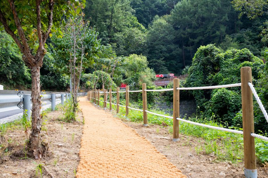 이 구간에는 인도가 없어 보행자가 차도에서 걷는 경우가 빈번했으나 이번 산책로 조성을 통해 보행로와 차도를 나눠 안전을 확보했다.