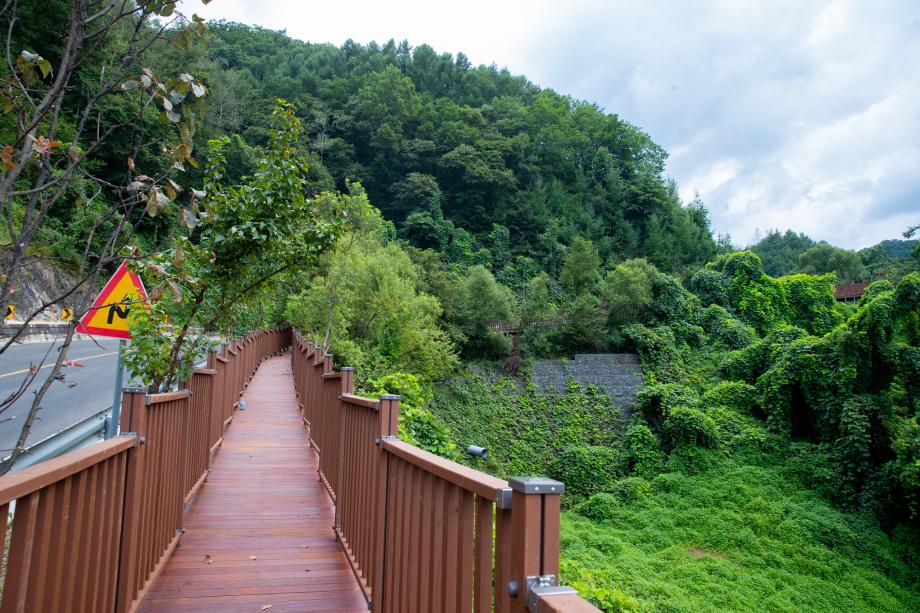 산새길 테마로드는 율리 별천지공원에서 좌구산 분젓치 생태터널로 이어지는 총 1.1km의 산책로다.